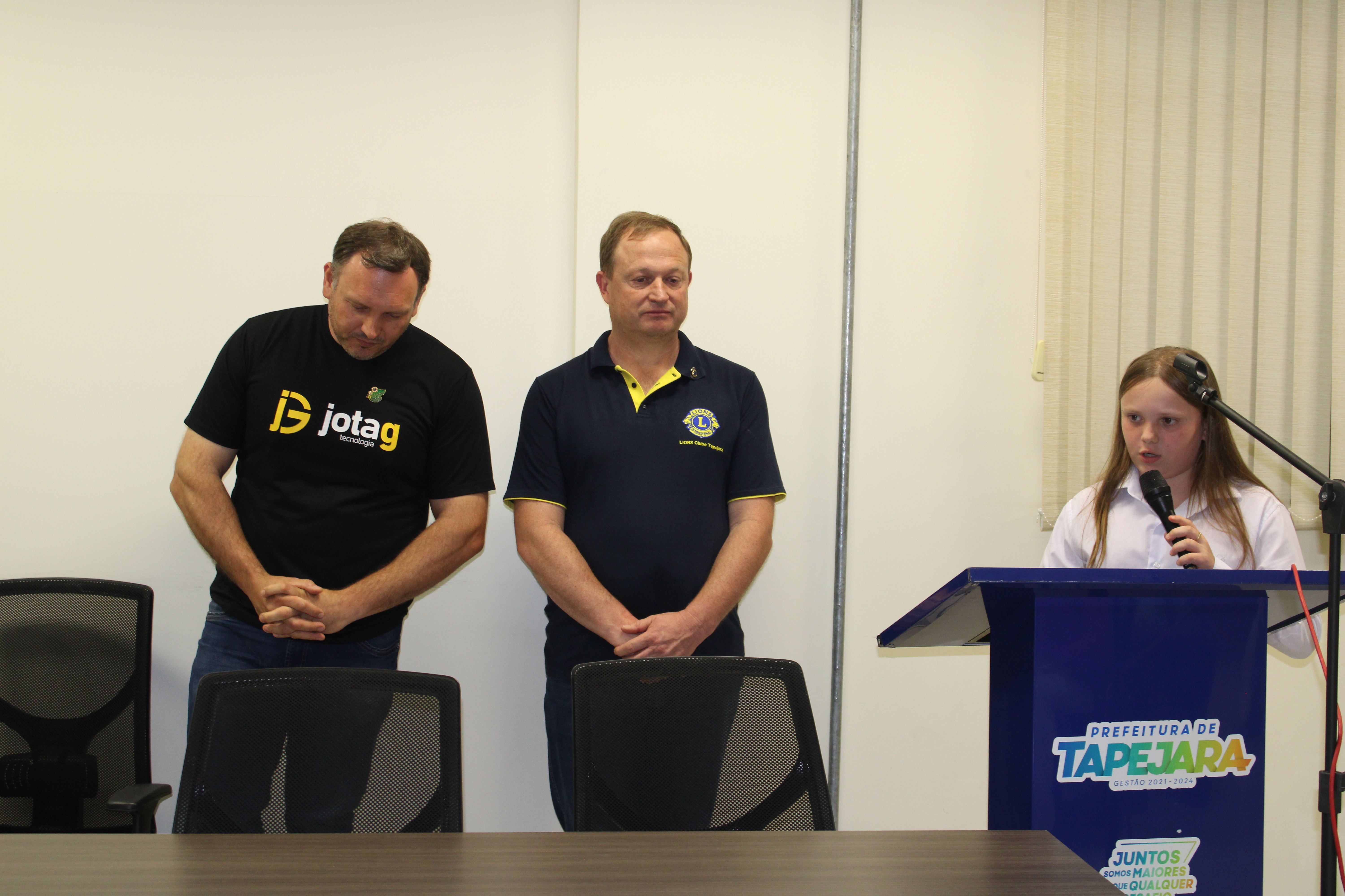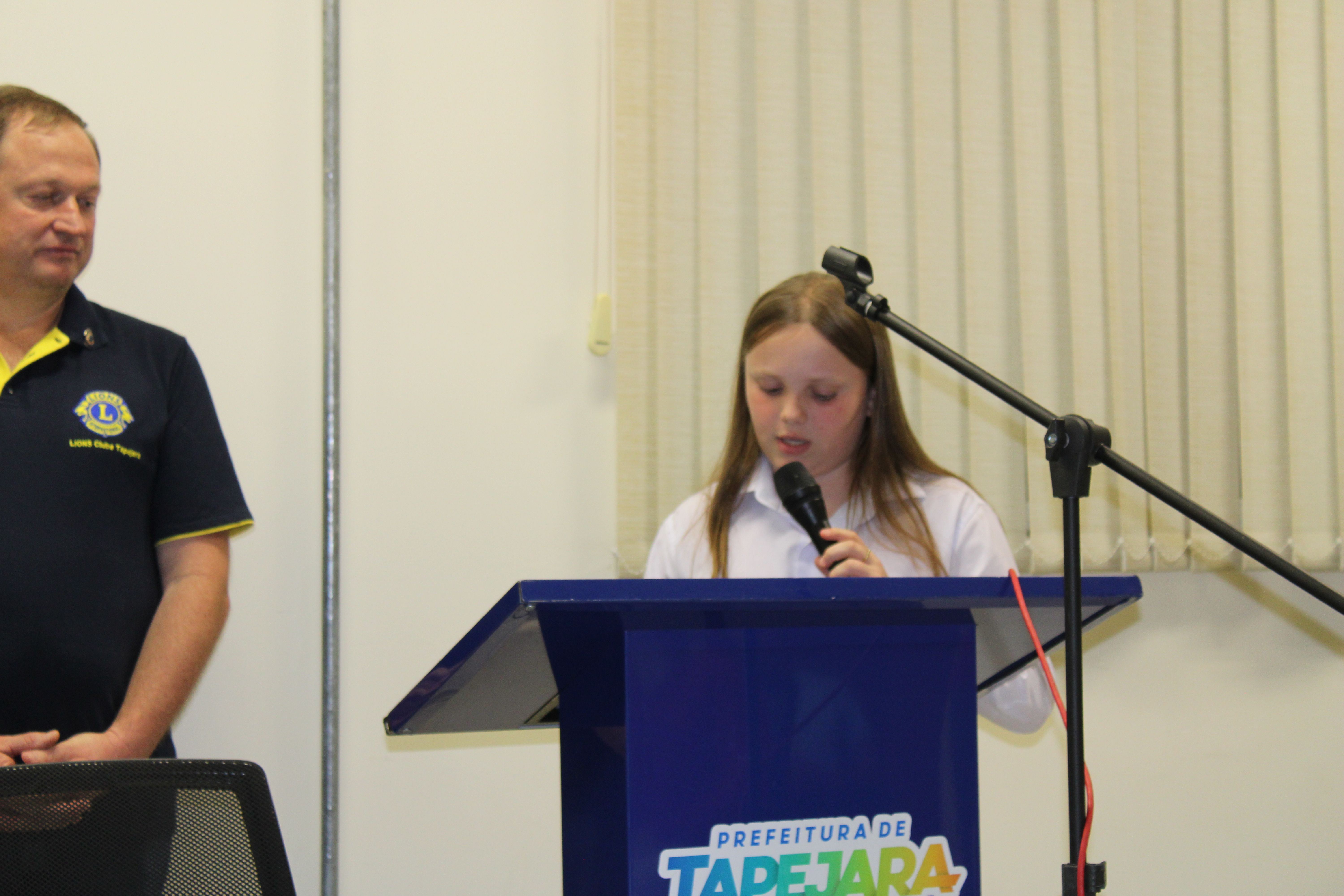 Por convite da Coordenação do Projeto Vereador Mirim endereçado ao Presidente do Lions Clube de Tapejara, o Sr. Everaldo Dallagnol e Jucemar De Giacometti, concomitantemente anuência da Mesa Diretora desta Casa, fundamentado no artigo 43 do nosso Regimento Interno Mirim, e com o fim da harmonia entre o Poder legislativo e a entidade beneficente, foi concedido o espaço de 20 minutos para que os representantes do Lions Clube, para que fizessem uma apresentação da entidade e dos projetos desenvolvidos.