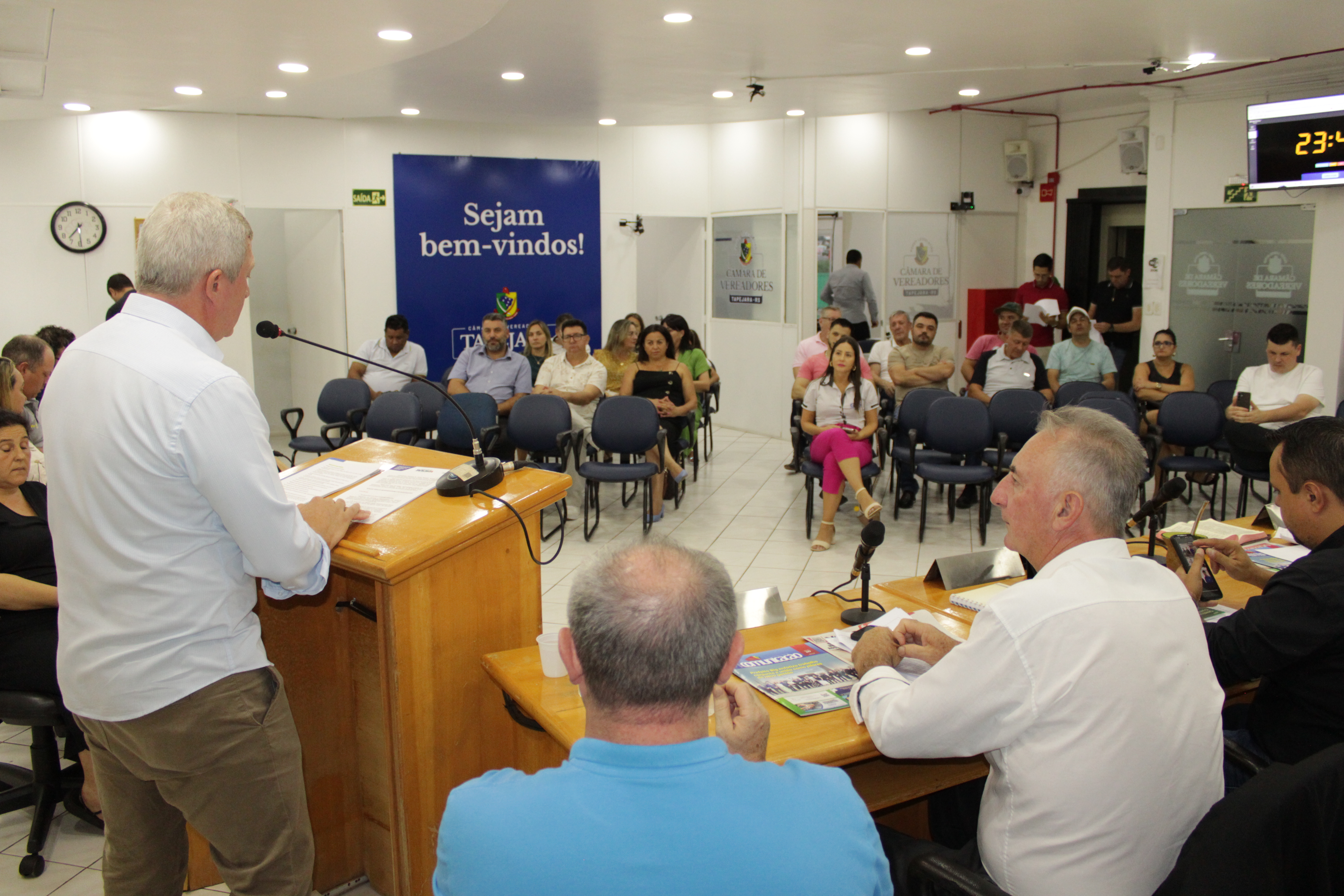 Conforme disposição regimental do art. 97§ 2ª combinado com os artigos 205 e 206 ambos do Regimento Interno desta colenda Casa Legislativa e juntamente com o Ofício nº 028/2025, teve na sessão a Tribuna Popular com o Prefeito Municipal de Tapejara, Sr. Evanir Wolff (BIG) e o Vice Prefeito Rodinei Bruel (Gipe), que fizeram suas explanações sobre assuntos relacionados com a Gestão Pública Municipal. Apresentando um resumo, que serviu como balanço das ações até agora realizadas e de outras tantas que estão programadas para os próximos 04 anos da gestão pública.