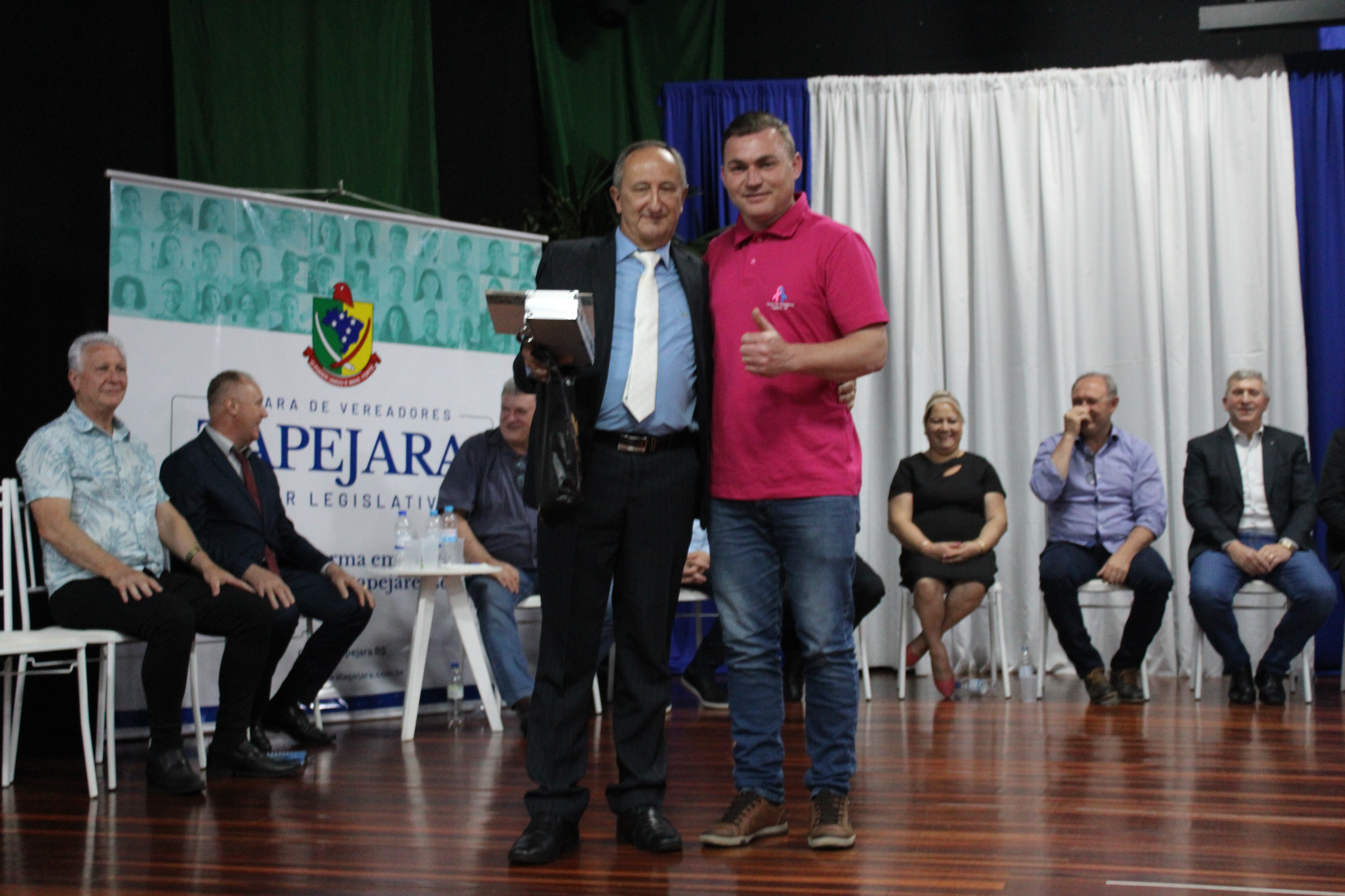 Ao final os homenageados receberam um mimo como reconhecimento e agradecimento por tudo que fizeram quando estiveram a frente do Legislativo Tapejarense.