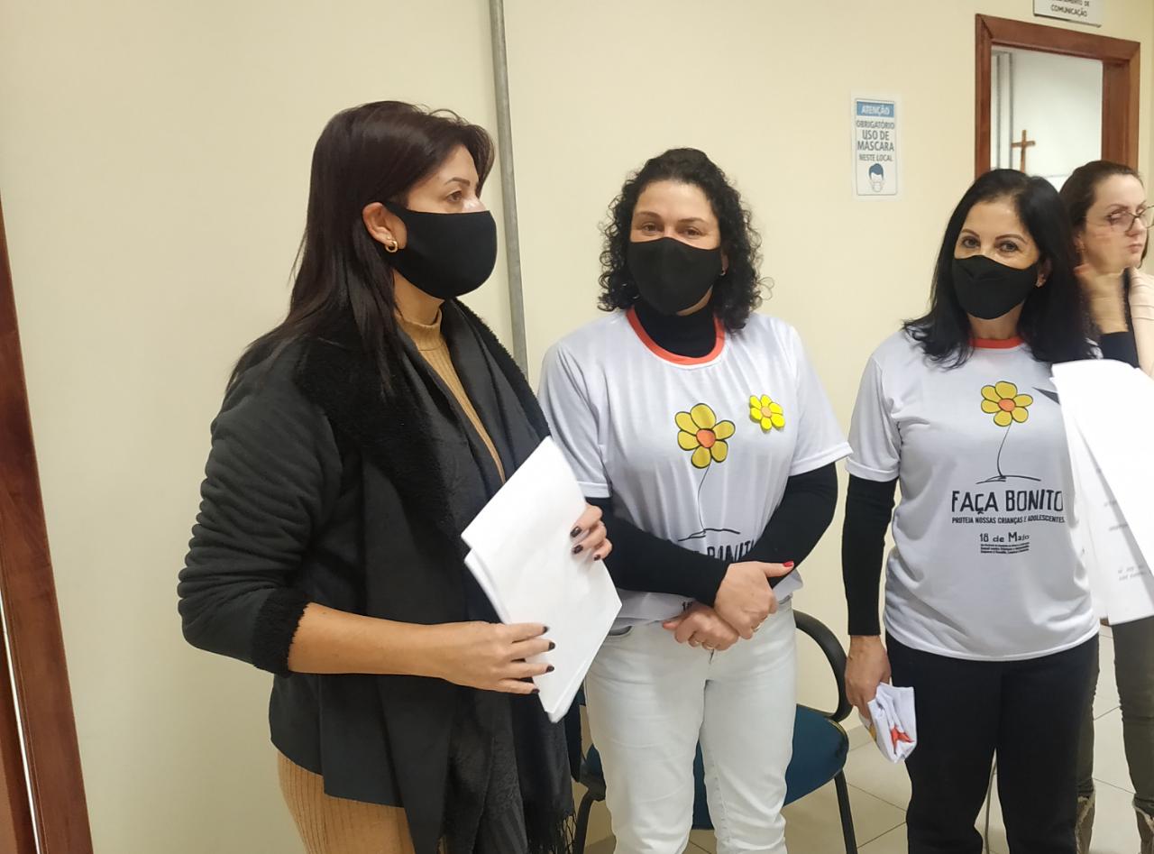Na oportunidade a Vereadora Adriana Bueno Artuzi do (PP), representando o presidente do Legislativo o Sr. Carlos Eduardo de Oliveira (EDU) do PSB, lembrou que já atuou como presidente do Comdicat e se colocou à disposição da atual presidência para ajudar nas atividades desenvolvidas. “Sabemos do trabalho árduo que envolve a proteção de crianças e adolescentes, por isso precisamos estar conscientes e atentos. O futuro das crianças será sempre hoje, o amanhã será tarde”, enfatizou Adriana, que recebeu das mãos da primeira-dama Nara Wolff e da esposa do vice-prefeito, Vanderleia Favretto, uma camiseta alusiva à Campanha.