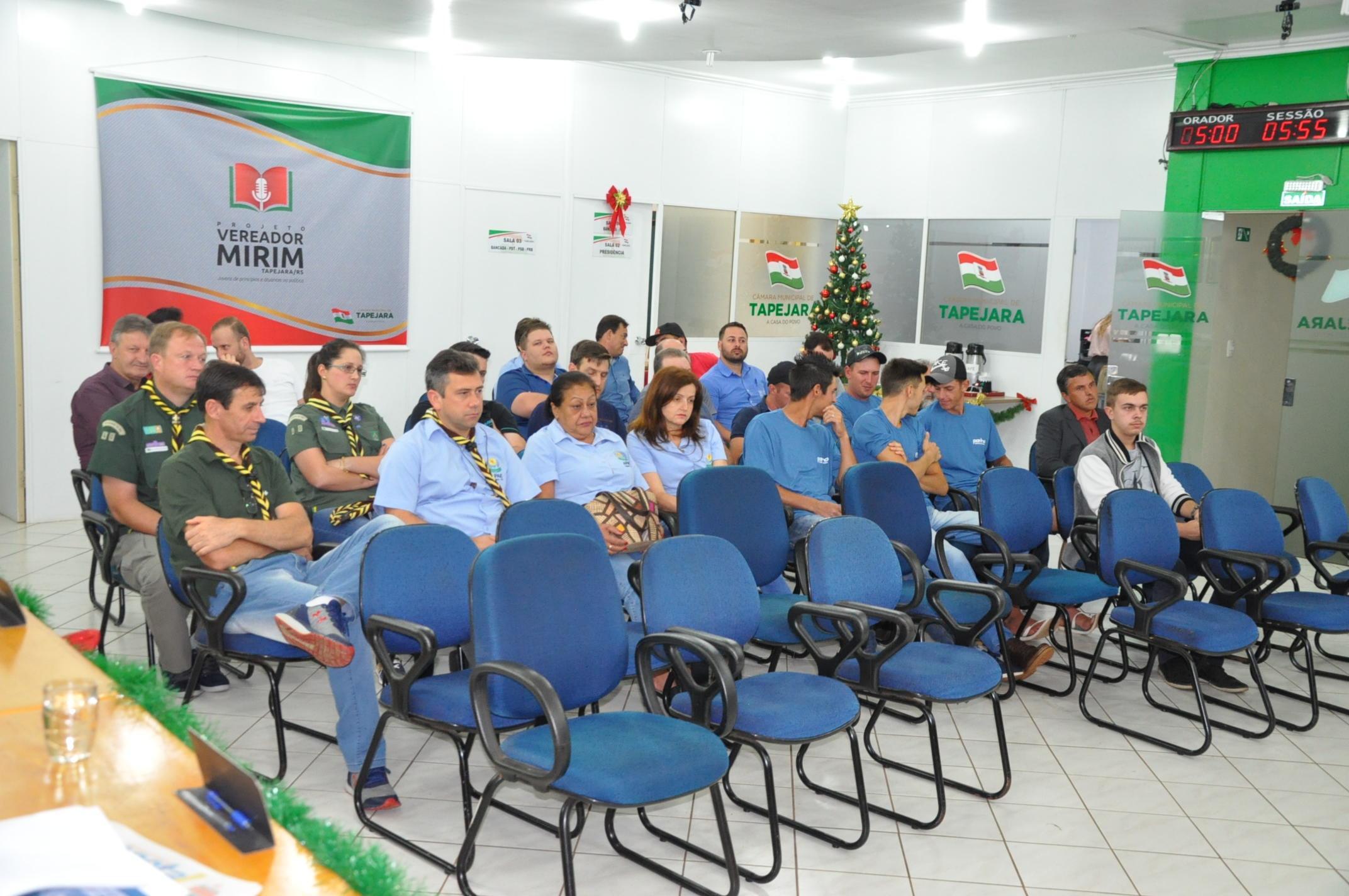 - Projeto de Lei do Executivo nº 106/2019 que pretende autorização Legislativa para conceder auxílio e firmar Termo de Fomento com o Grupo Escoteiro Tapejara 40, objetivando auxiliar a entidade na realização do Projeto “Em Busca de Novas Aventuras”;