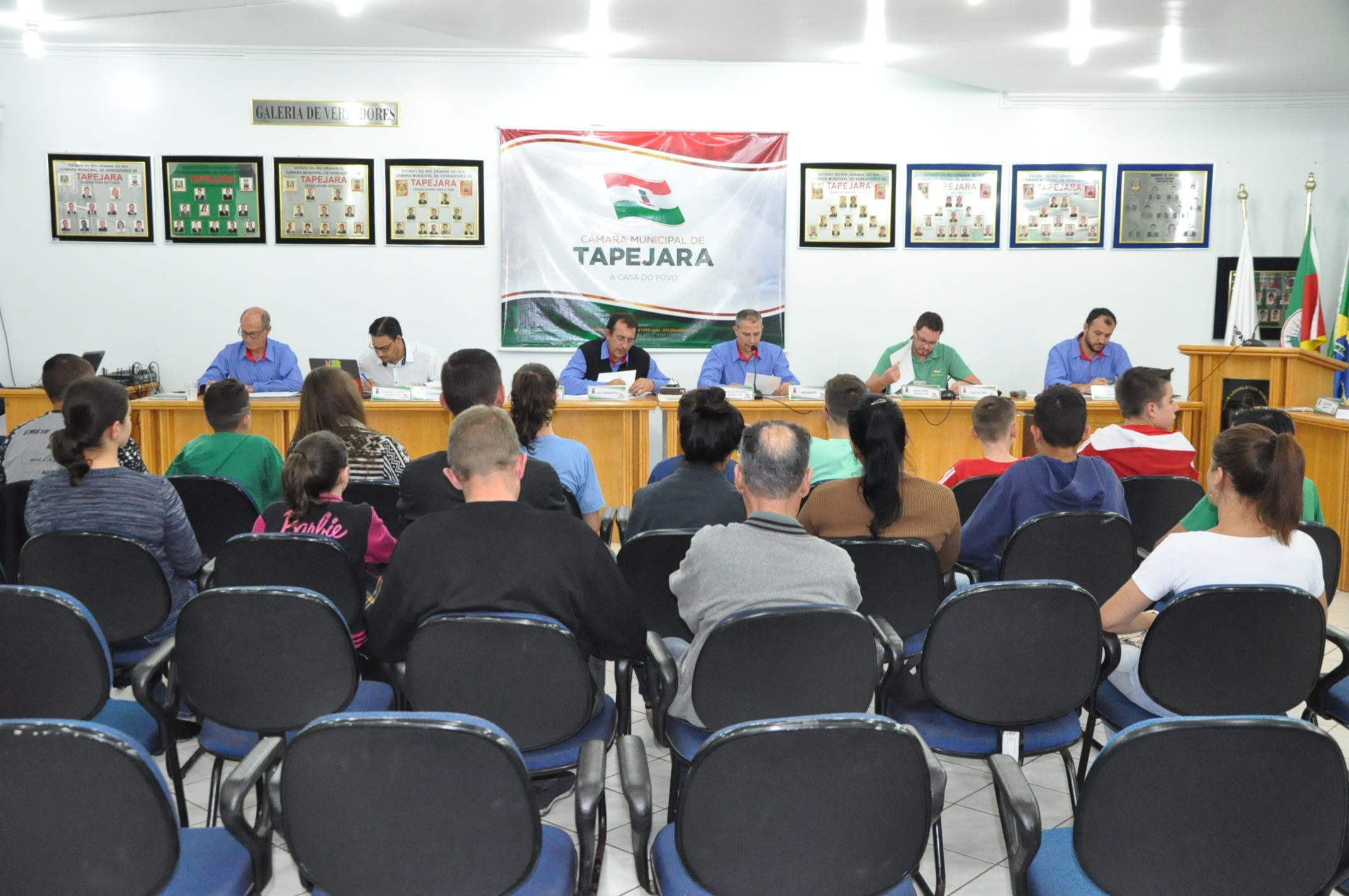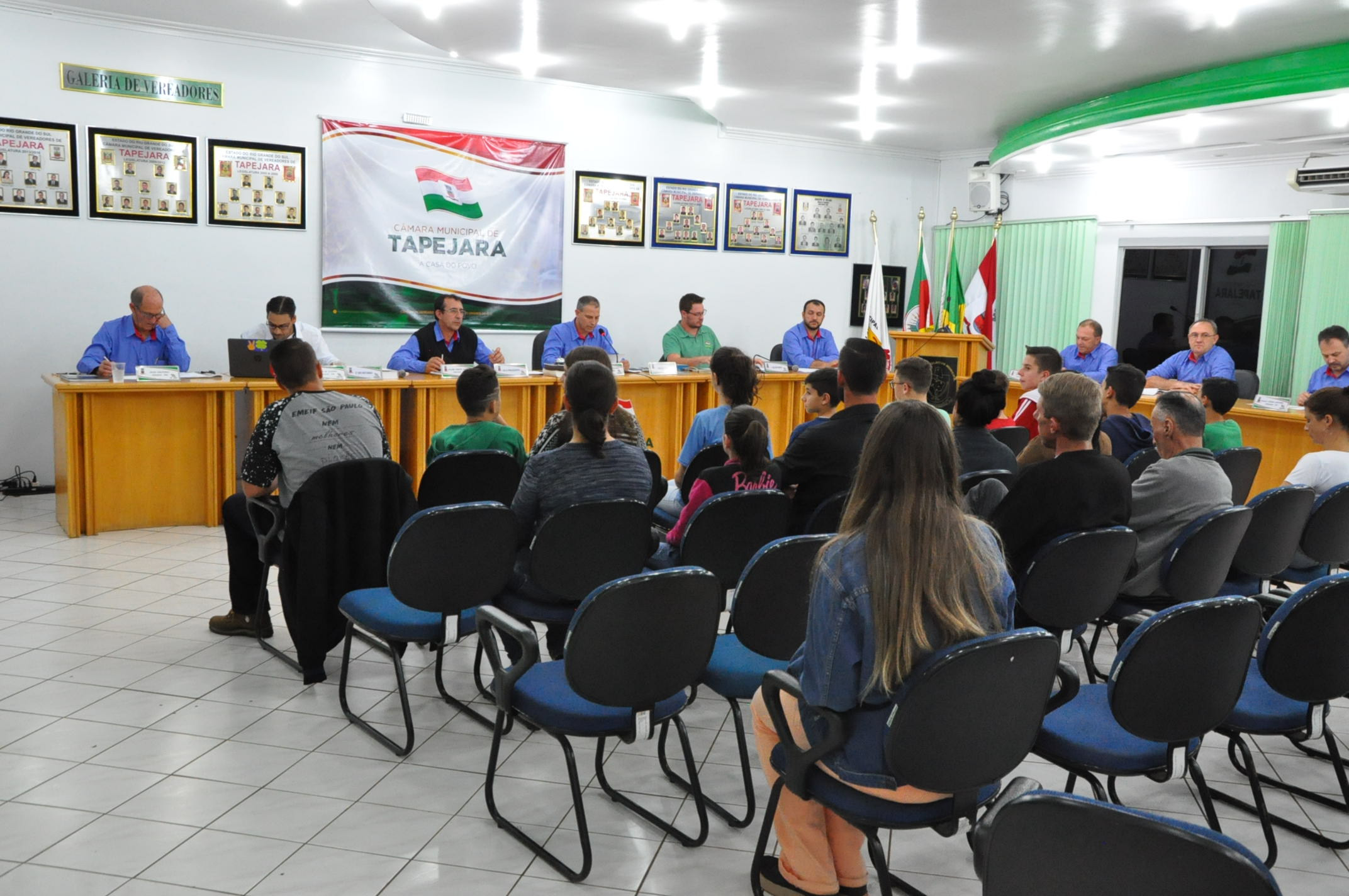 A Sessão Ordinária desta segunda-feira, dia 22, contou com a participação de convidados especiais na Câmara de Vereadores de Tapejara. Os 11 Vereadores Mirins eleitos e seus familiares assistiram toda a sessão e conferiram a aprovação de quatro Projetos e duas Indicações.