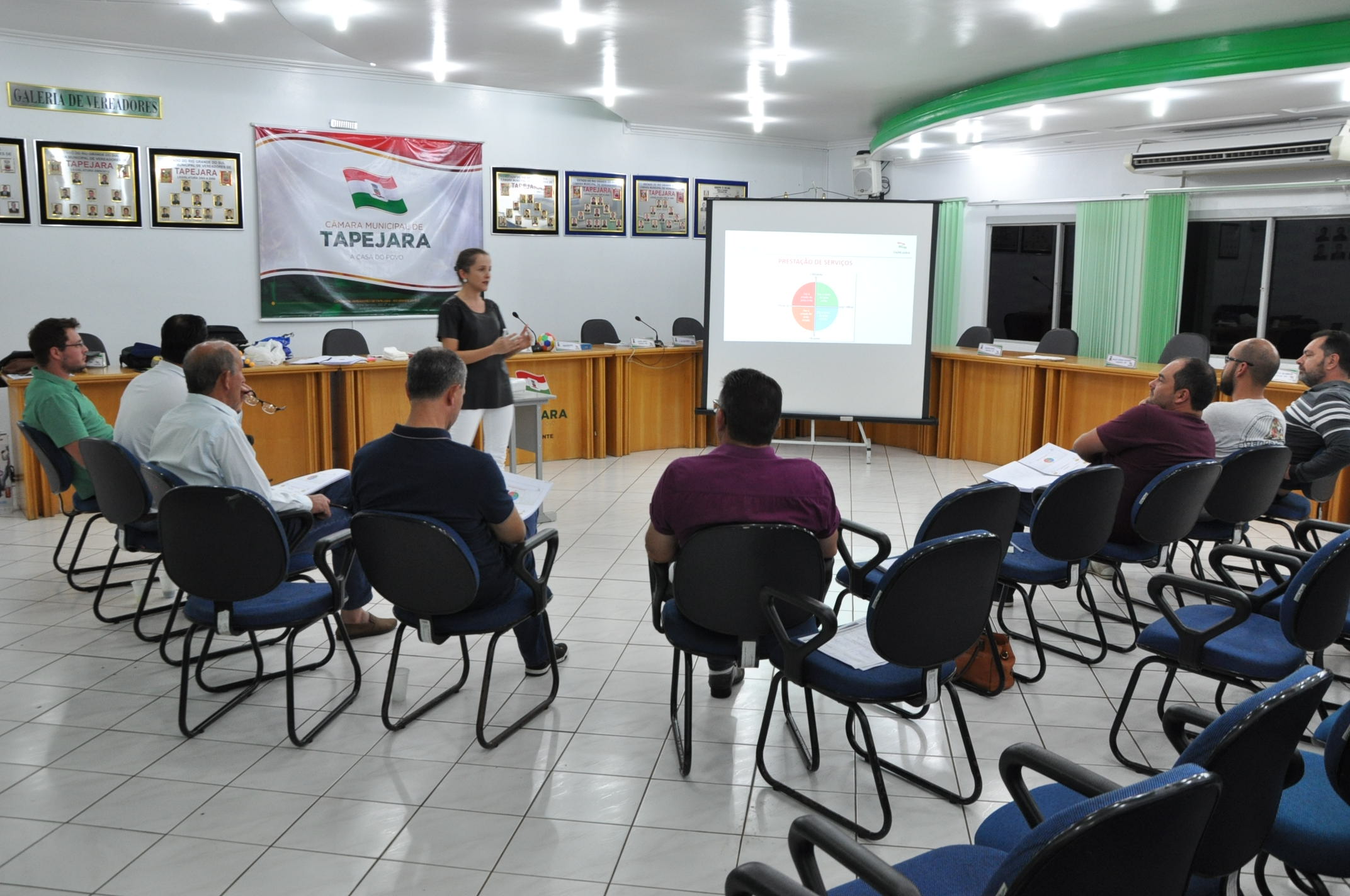 A fim de aprimorar os serviços prestados na Câmara de Vereadores de Tapejara, os vereadores e servidores municipais participaram de um Treinamento de Atendimento e Oratória com a especialista em Coaching, Édina Pereira.