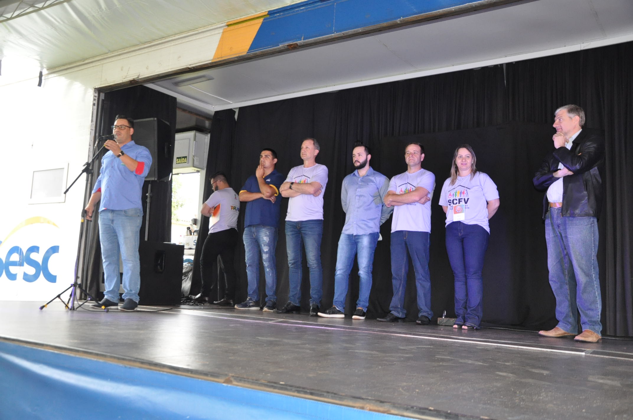 Os vereadores Diego Oliveira (MDB), Celso Piffer (Cidadania) e Valdomiro Venancio (PP), juntamente com a diretora legislativa, Caciane Bortolini e os vereadores mirins, Náthaly Victória da Rosa Marques, Nicolas Pretto Johann, Guilherme de Oliveira Cruz e Vinicius Parizotto Broch, participaram na manhã de hoje, quarta-feira (27), da abertura do Festival de Arte e Cidadania, em frente ao Ginásio Municipal Albino Sossella.