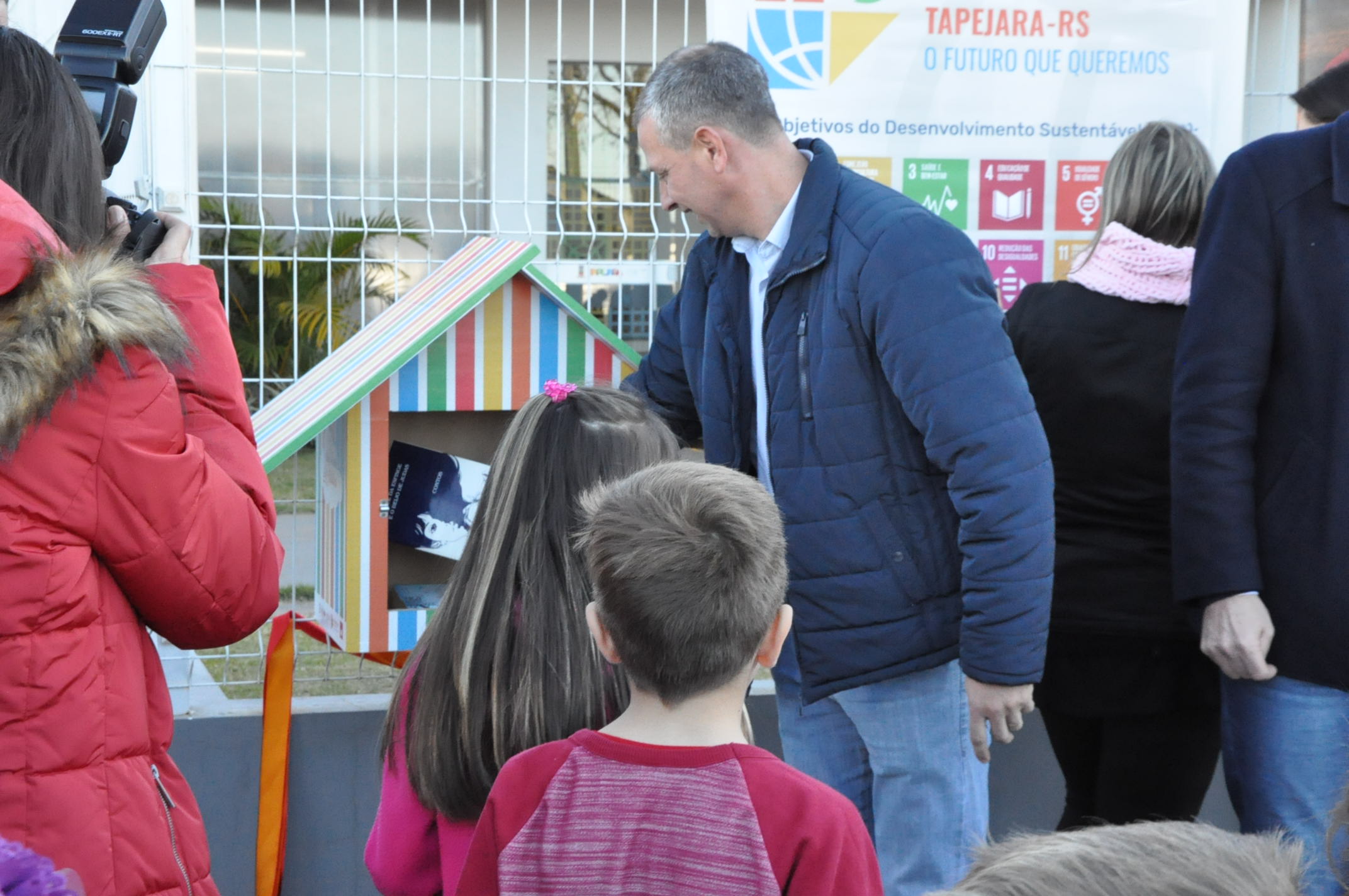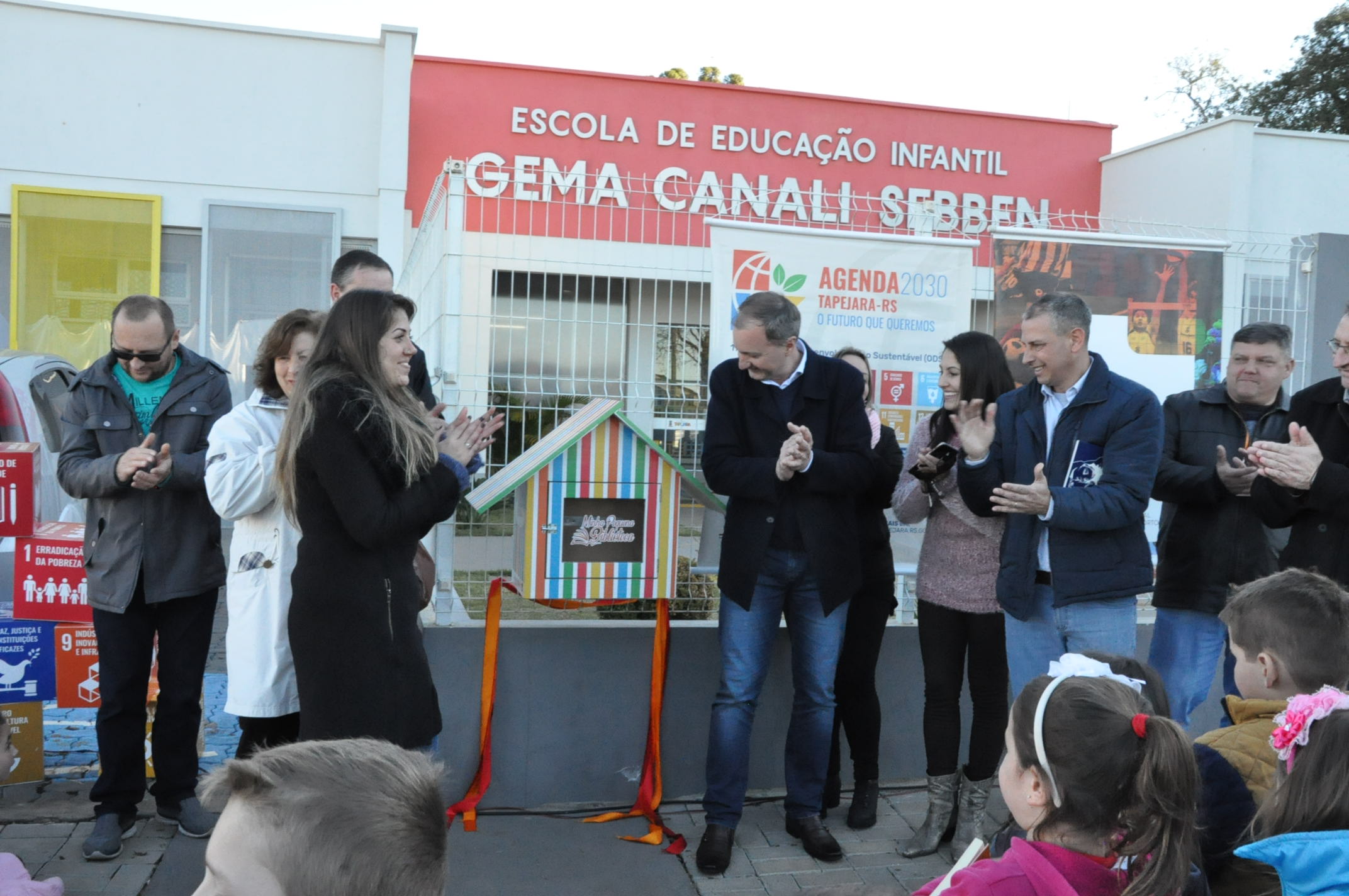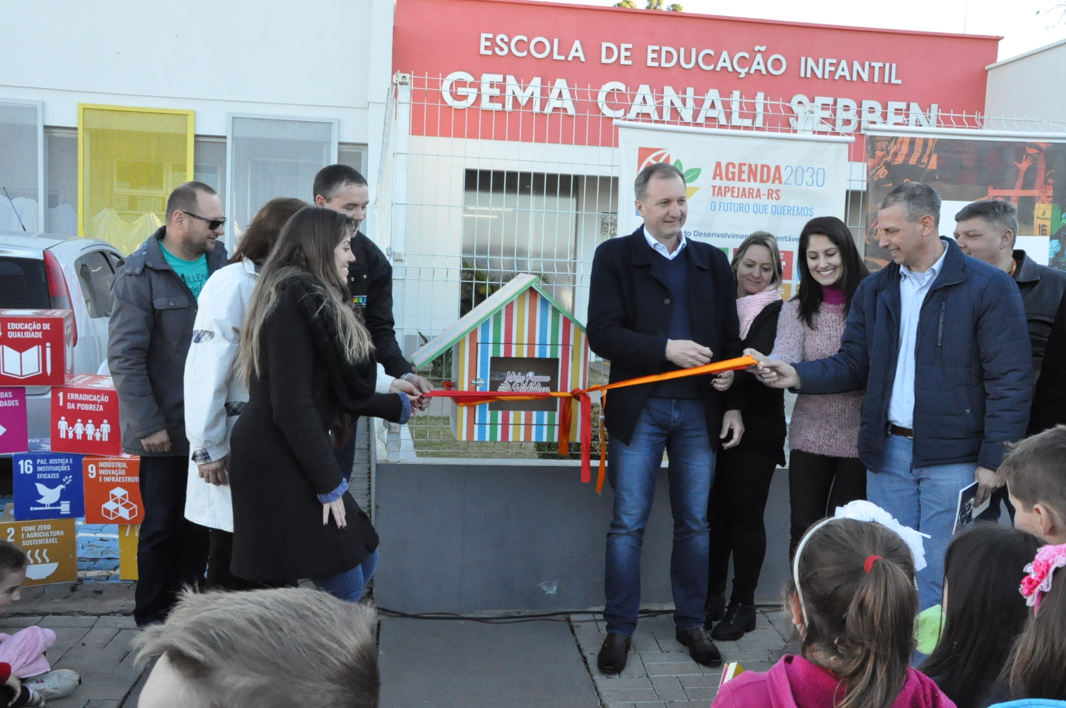 A Câmara de Vereadores, através do presidente Altamir Galvão Waltrich e dos vereadores, Diego Antonio de Oliveira e Hugo Dalposso, juntamente com os vereadores mirins, Rafael Junior Dallagasperina, Vinicius Parizotto Broch, Nicolas Pretto Johann e Guilherme de Oliveira Cruz, participaram do lançamento do Projeto de Leitura “Minha Pequena Biblioteca”, realizado na tarde de hoje, segunda-feira (8) na Escola de Educação Infantil Gema Canali Sebben.