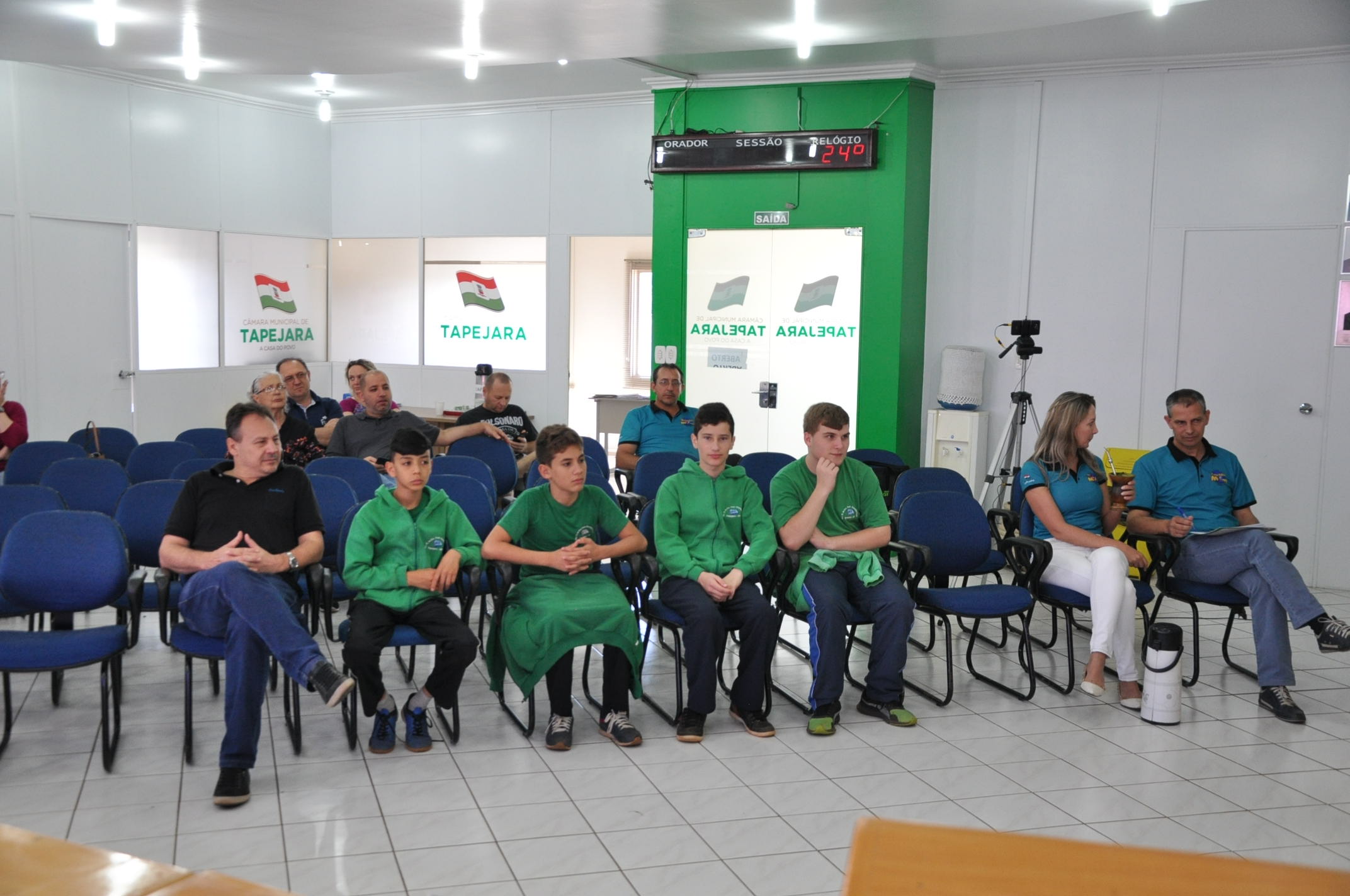Estiveram participando da sessão a Presidente do Legislativo Maeli Brunetto Cerezoli, os vereadores Volmir Daneli, Marcos Bressan, Rodinei Bruel, Paulo Cesar Lângaro e Altamir Galvão Waltrich que coordena o projeto juntamente com a diretora da Câmara Caciane Bortolini. Também estiveram participando os alunos da Escola Giocondo Canali.
