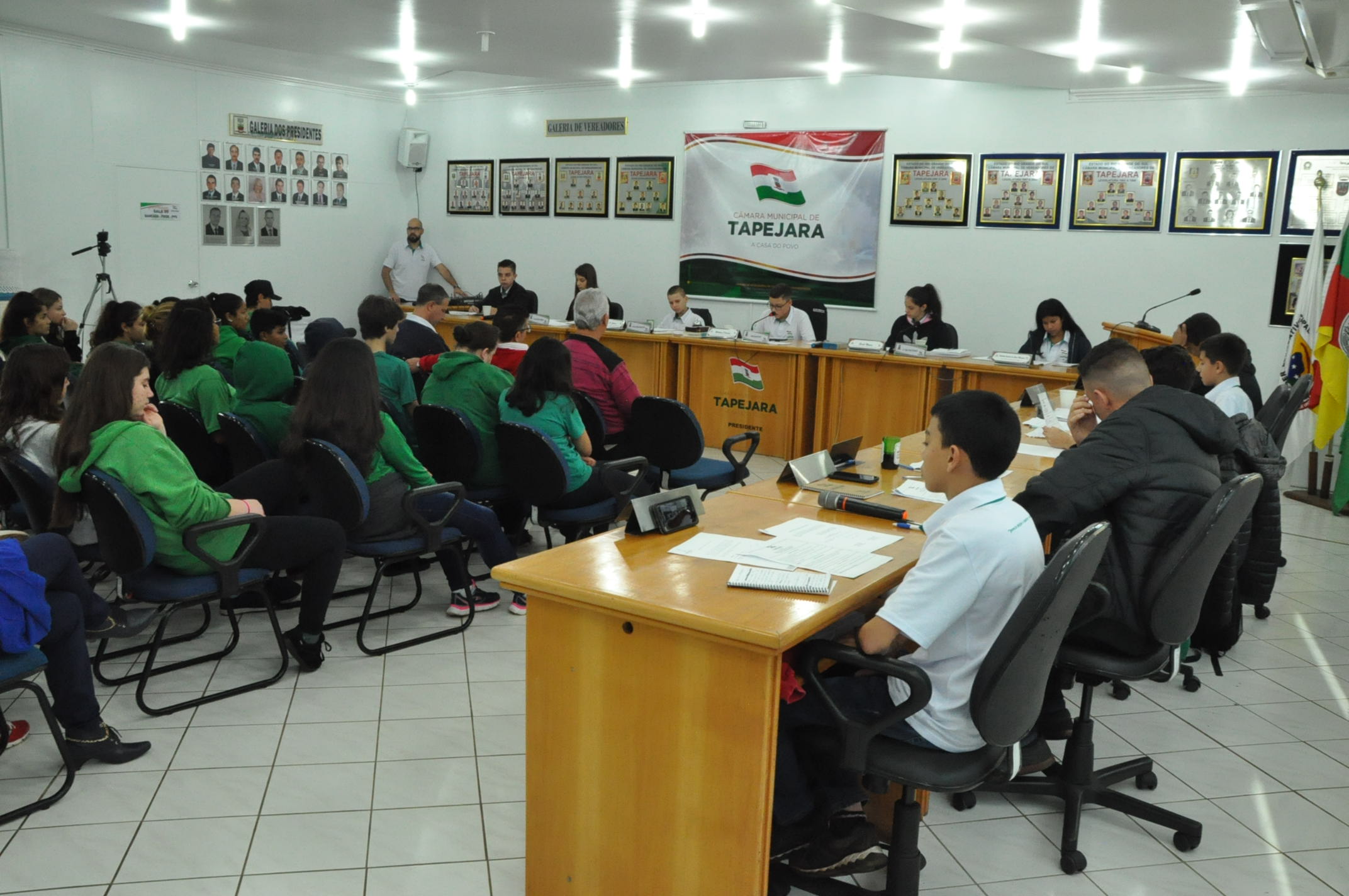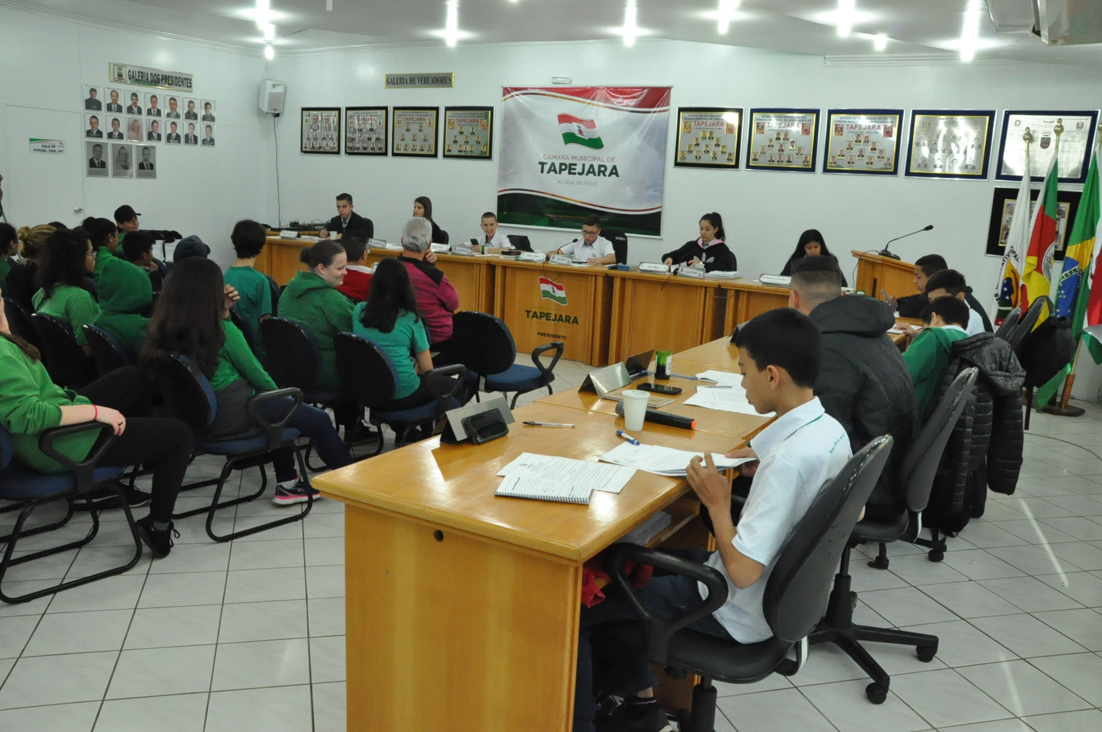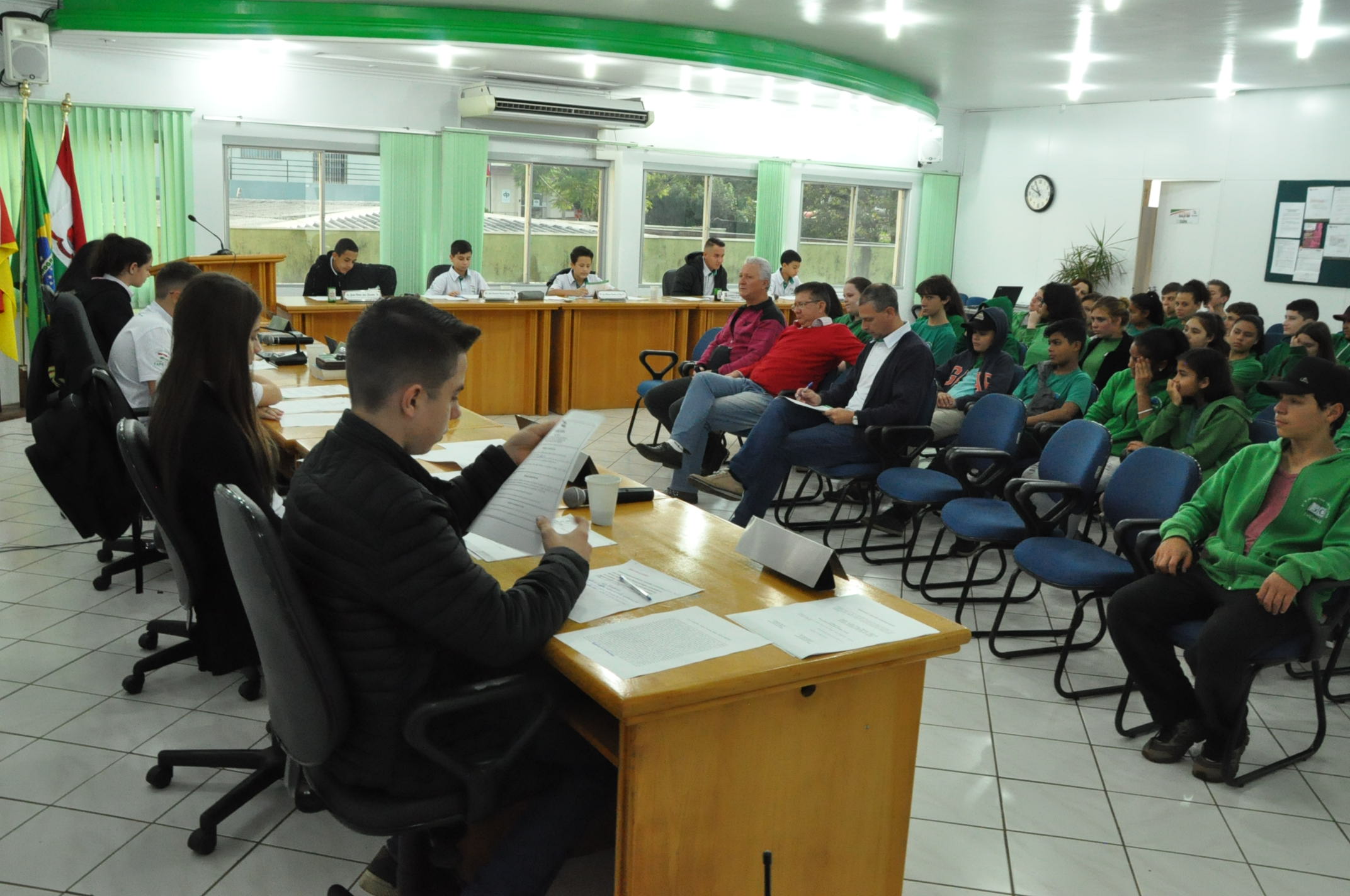A segunda Sessão Ordinária dos Vereadores Mirins aconteceu na manhã de hoje, quinta-feira (13), na Câmara de Vereadores. Na ocasião, os alunos do 8º ano da Escola Municipal Giocondo Canali estiveram prestigiando e conferindo a aprovação de três Indicações.