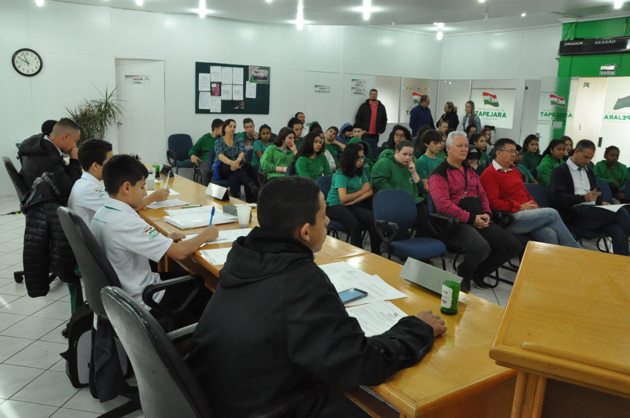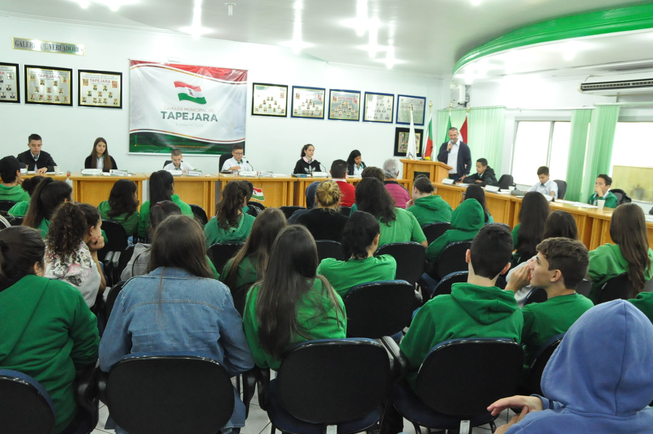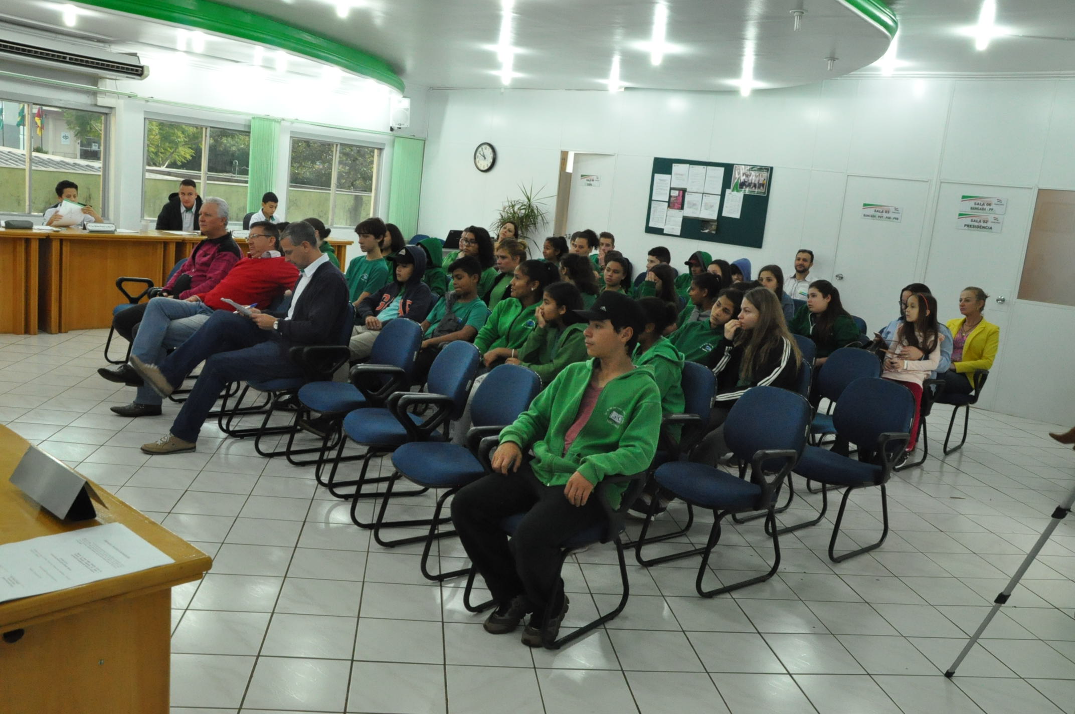 A segunda Sessão Ordinária dos Vereadores Mirins aconteceu na manhã de hoje, quinta-feira (13), na Câmara de Vereadores. Na ocasião, os alunos do 8º ano da Escola Municipal Giocondo Canali estiveram prestigiando e conferindo a aprovação de três Indicações.