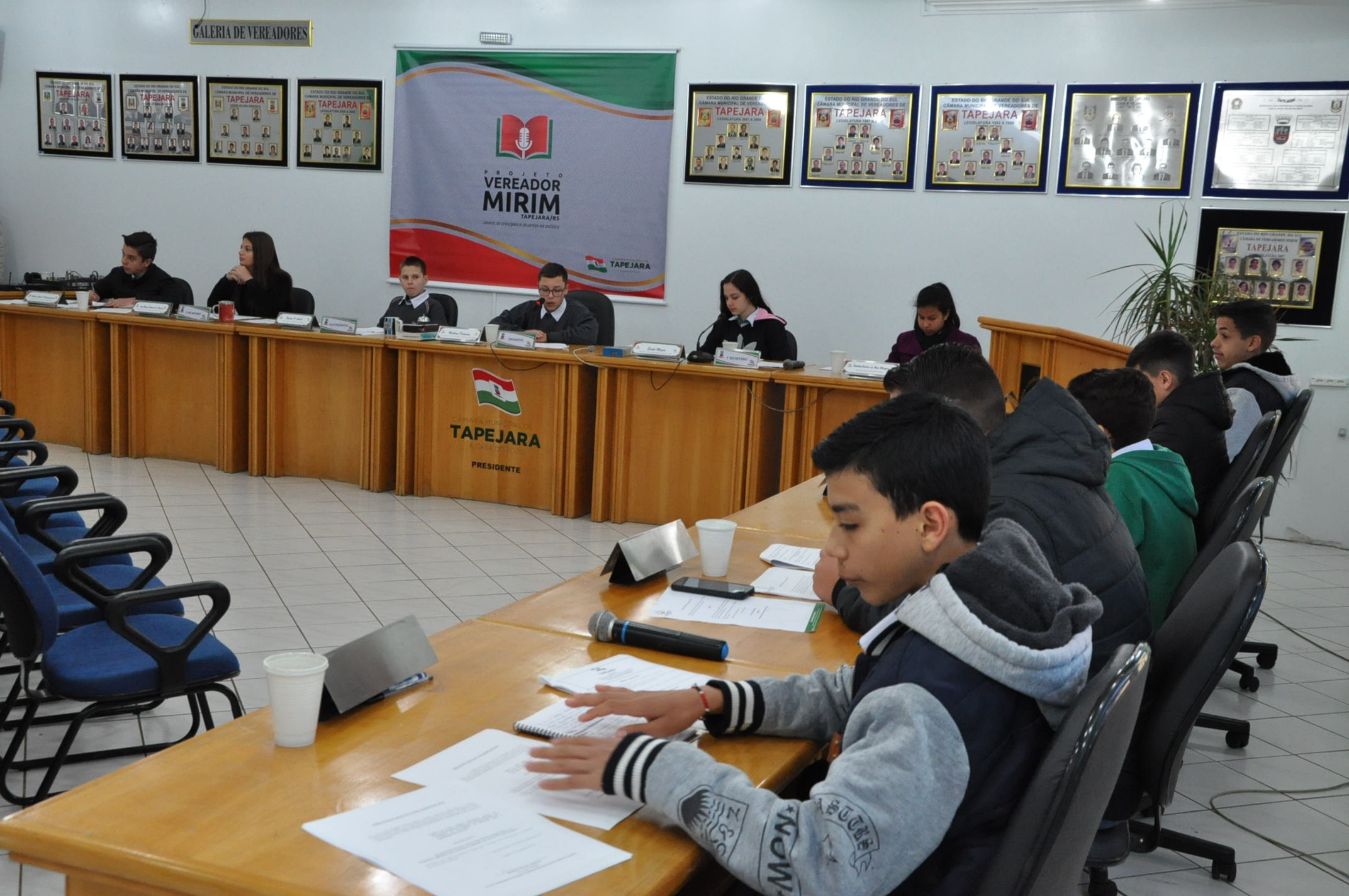 A quarta Sessão Ordinária dos Vereadores Mirins aconteceu na manhã de hoje, quinta-feira (15), na Câmara de Vereadores. Na ocasião, os alunos do 7º ano da Escola Municipal Marieli Andreola estiveram prestigiando e conferindo a aprovação, por unanimidade, de seis Indicações.