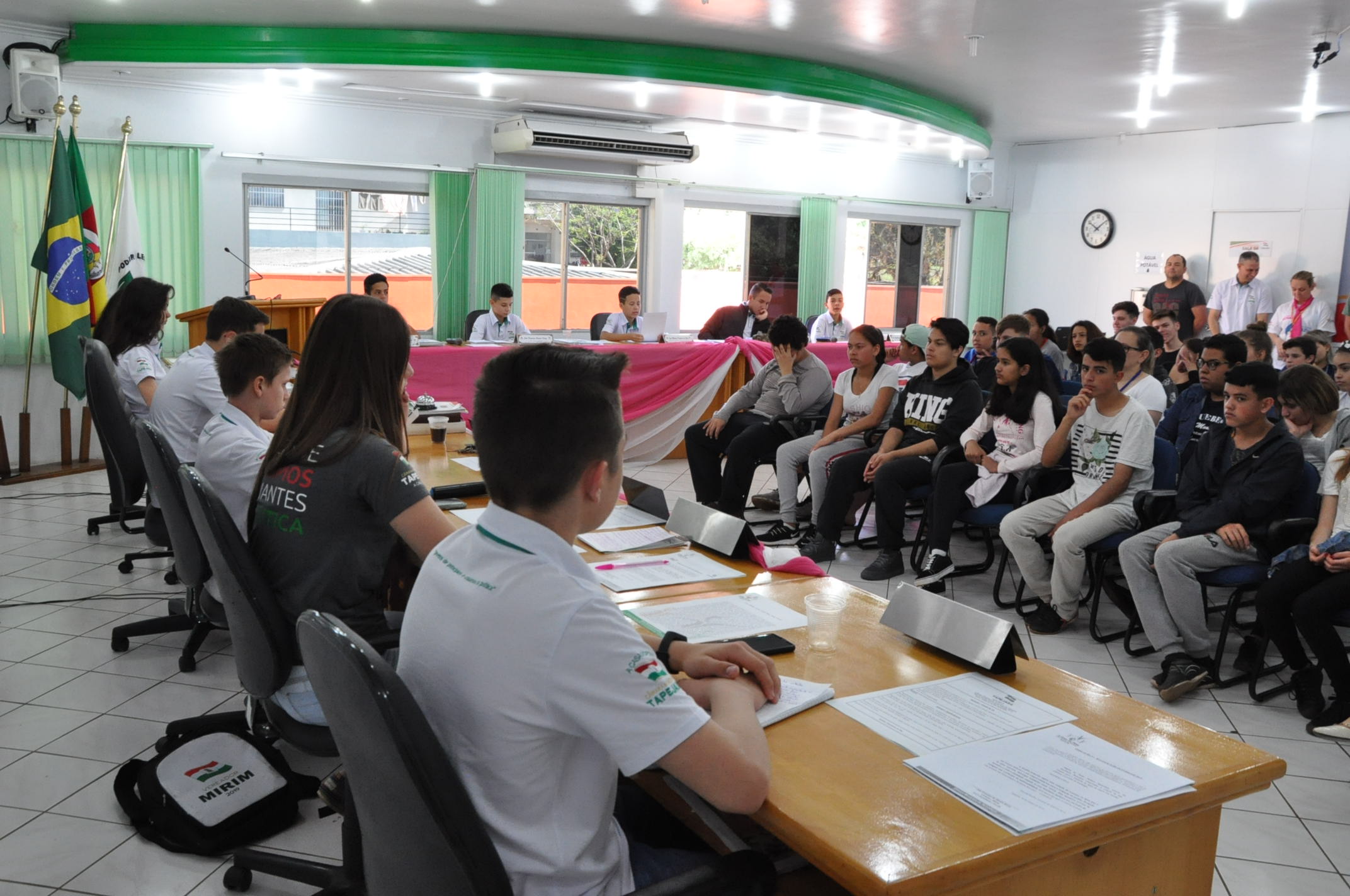 A sexta Sessão Ordinária dos Vereadores Mirins aconteceu na manhã de hoje, quinta-feira (10), na Câmara de Vereadores. Na ocasião, os alunos do 9º ano da Escola Estadual Severino Dalzotto e os alunos do 7º e 8º anos da FAT – Faculdade e Escola estiveram prestigiando e conferindo a aprovação, por unanimidade, de cinco Indicações.