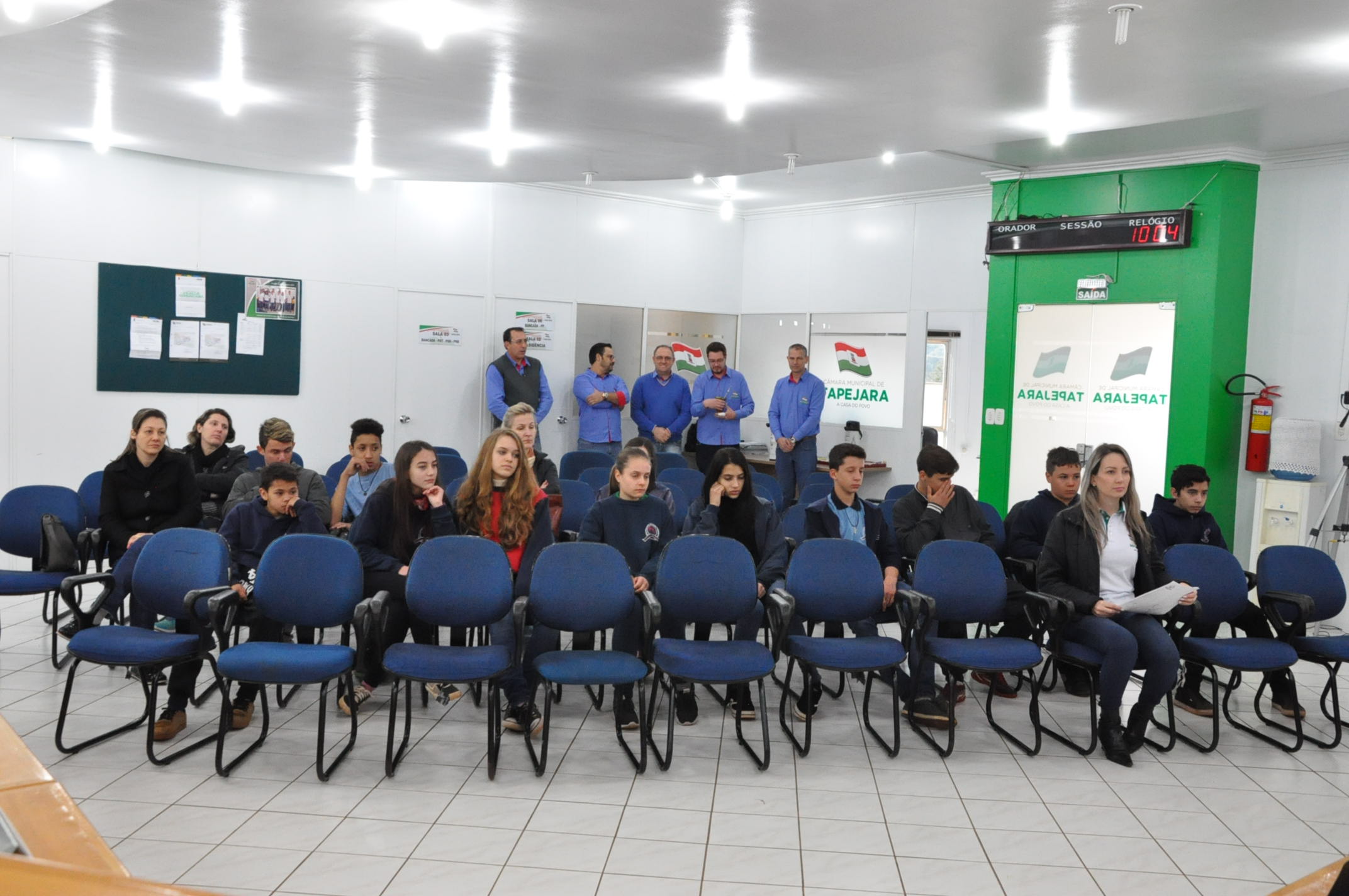Além dos alunos da Escola Municipal Ângelo Posser, estiveram prestigiando a sessão: professores, diretores, presidente da Câmara, Altamir Galvão Waltrich; coordenador do projeto, vereador Daniel Kadini e Caciane Bortolini, vereadores: Diego Antonio de Oliveira, Rodinei Bruel e Volmir Danelli e servidores da Câmara.