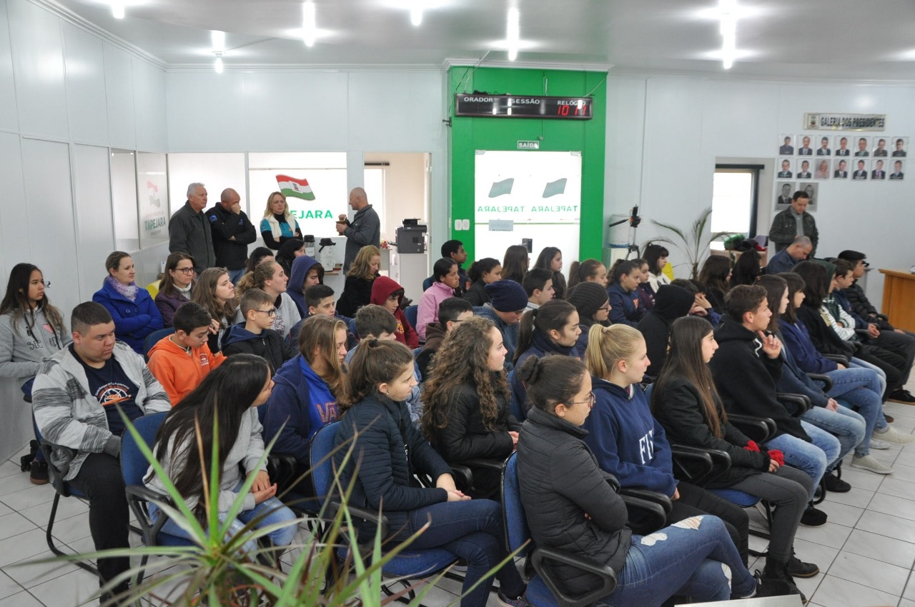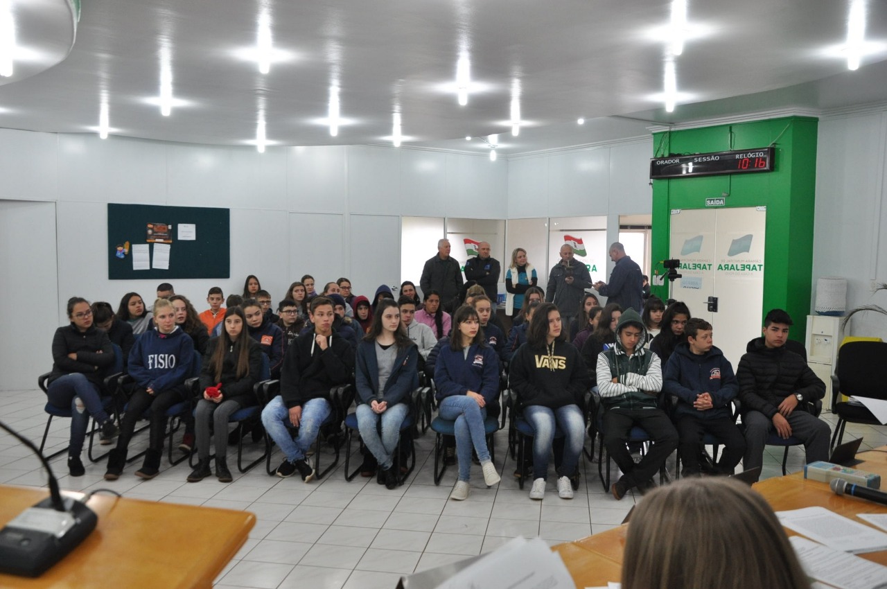 Estiveram presentes os vereadores: Celso Piffer, Marcos Bressan, Rodinei Bruel, Altamir Galvão Waltrich e a presidente do legislativo Maeli Caroline Brunetto. Também participaram os alunos da Escola Leonel de Moura Brizola.