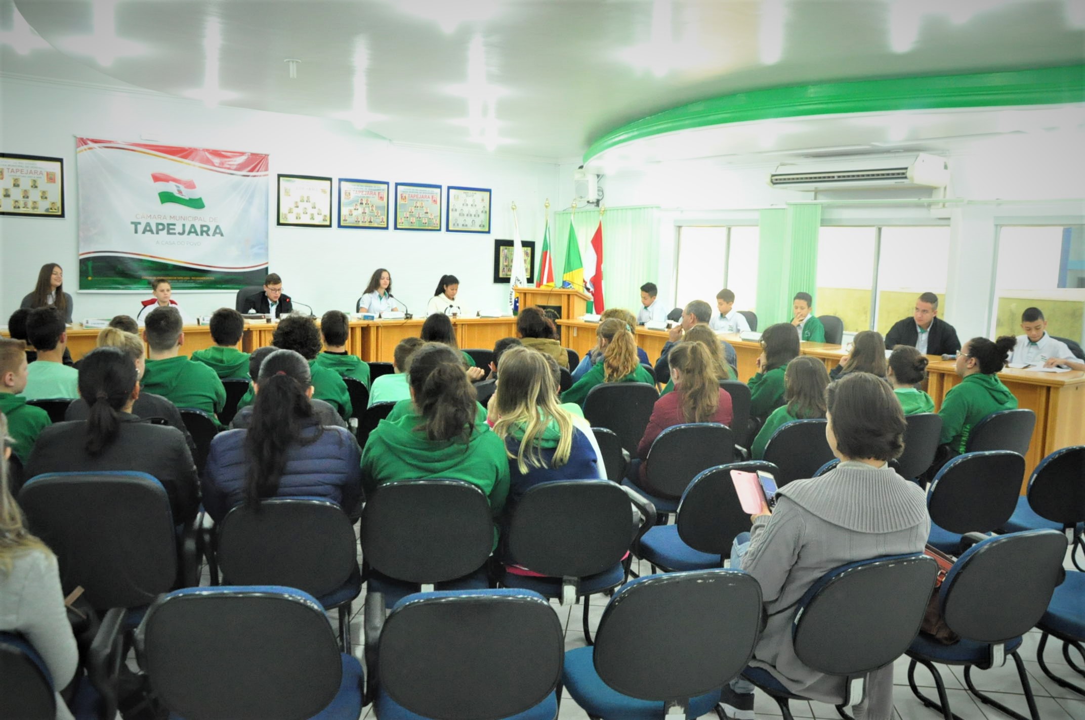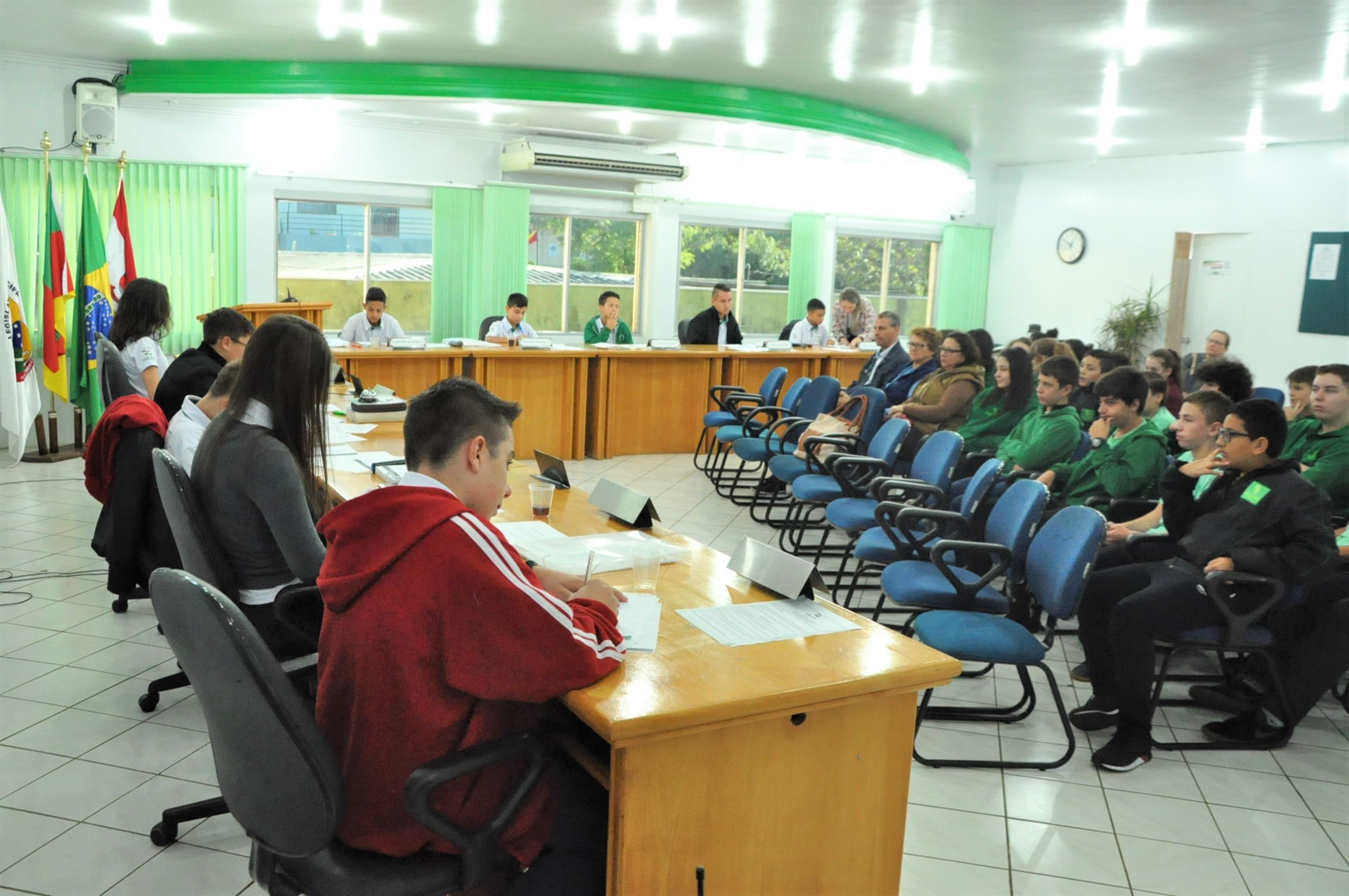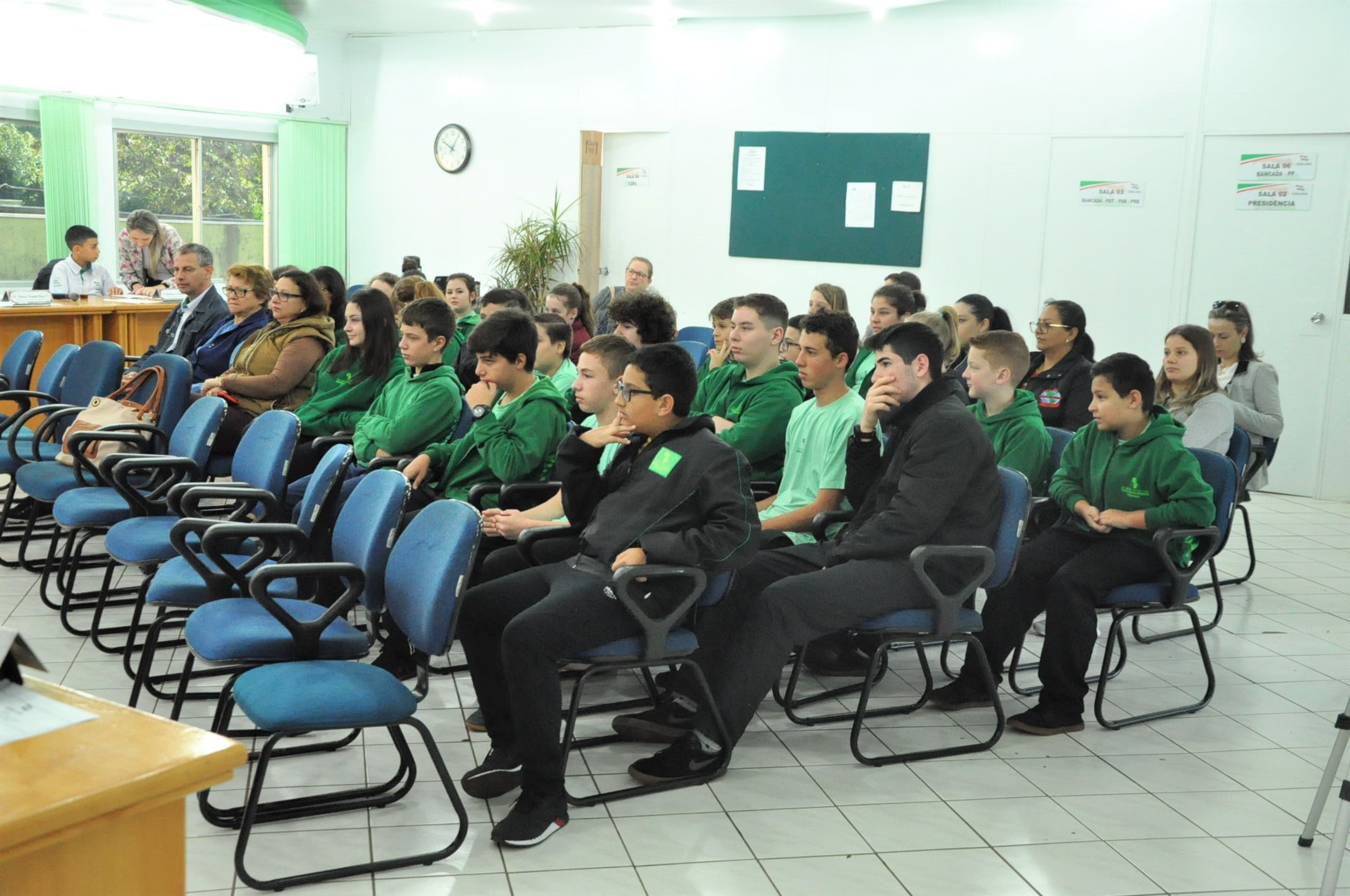 As duas indicações foram aprovadas por unanimidade. Além dos alunos do 6º e 8º ano da Escola Benvenuta Sebben Fontana, estiveram prestigiando a sessão: professores, presidente da Câmara Altamir Galvão Waltrich, vereadores Celso Piffer, Rodinei Bruel, coordenador do projeto, vereador Daniel Kadini e Caciane Bortolini e demais servidores da Câmara.