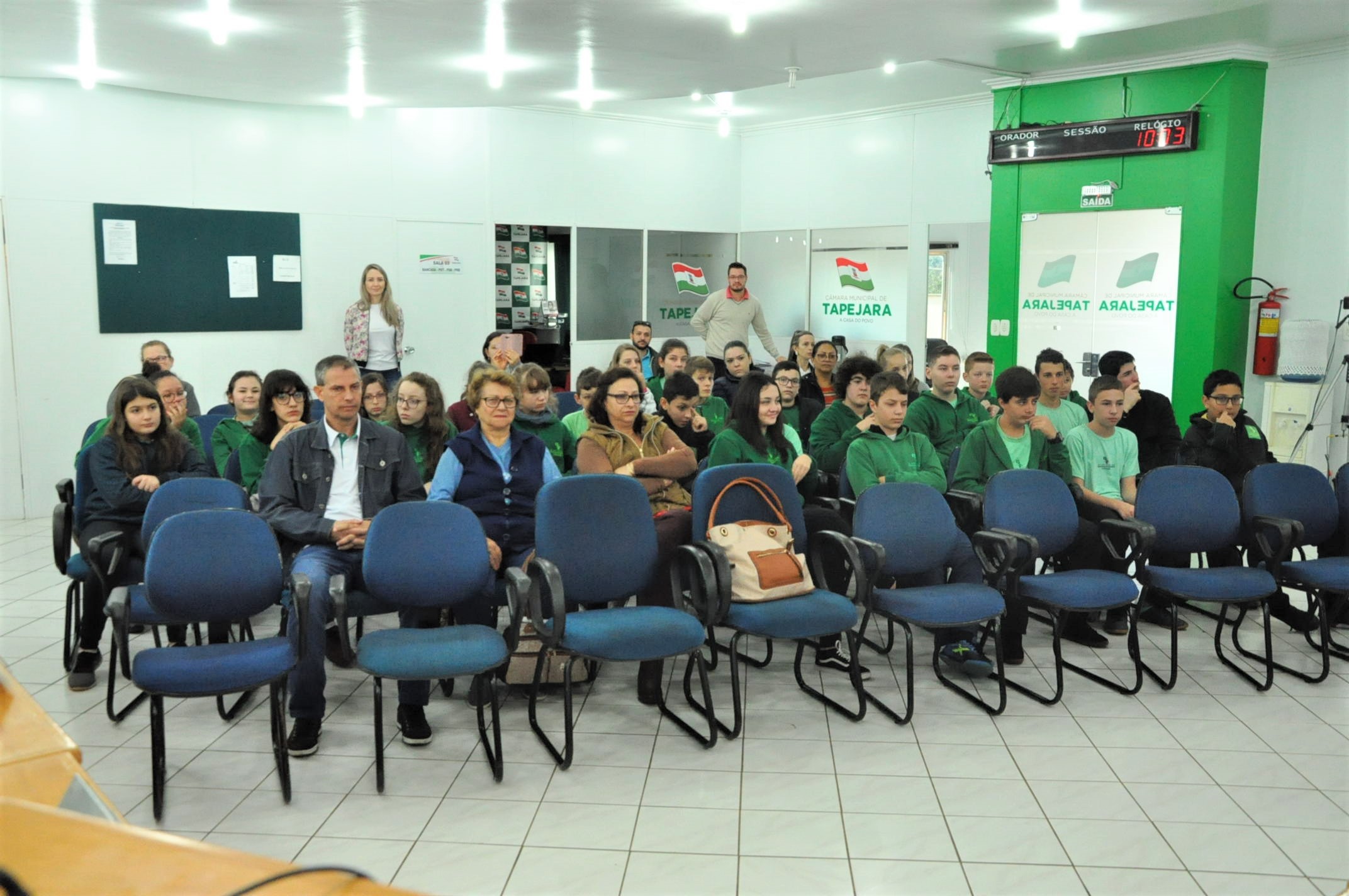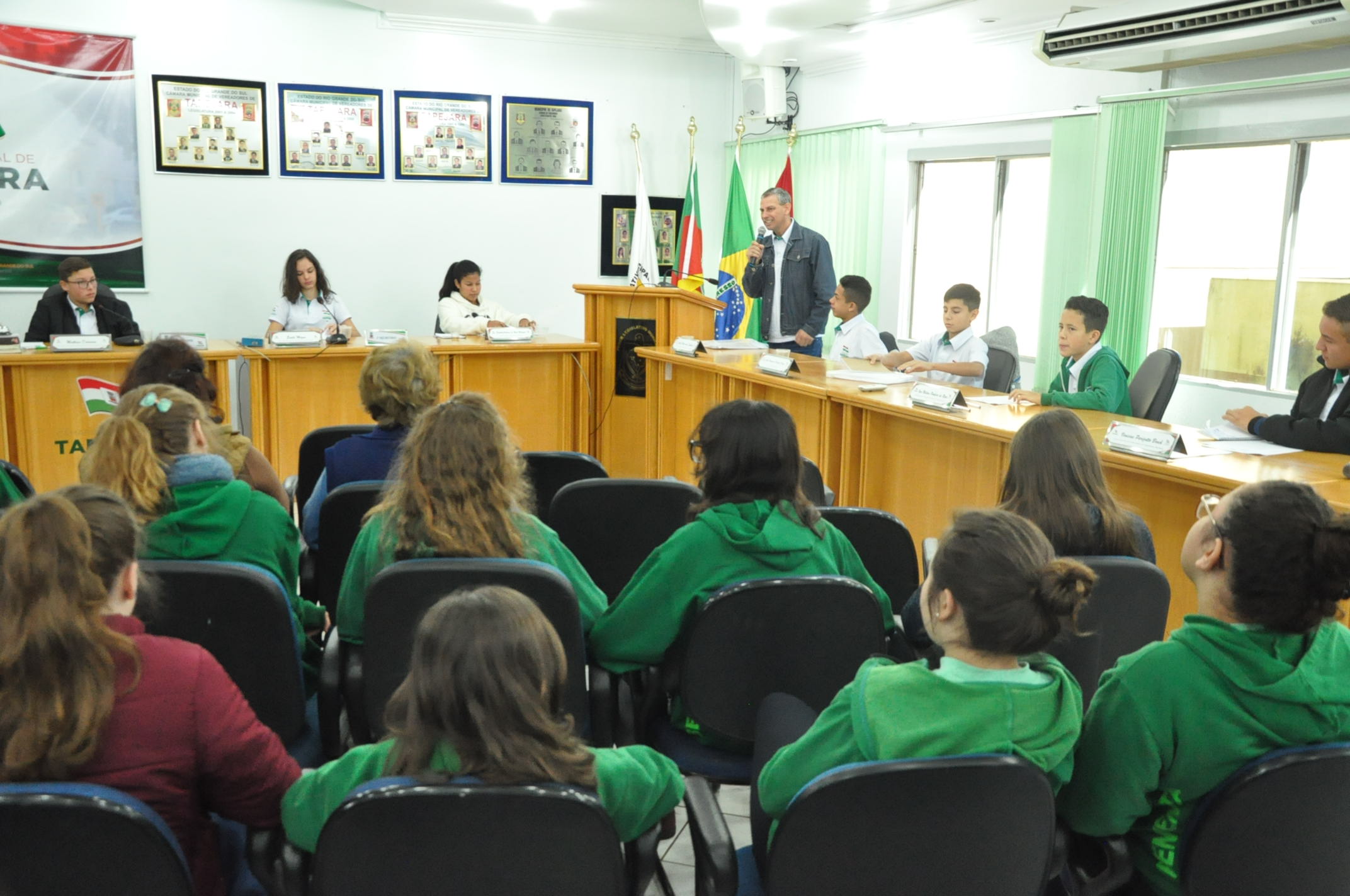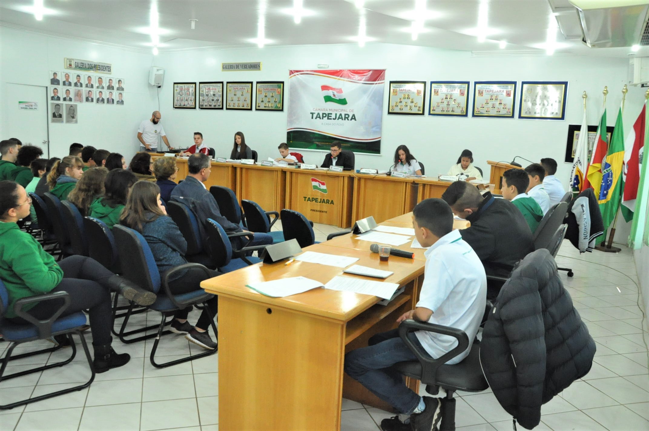As duas indicações foram aprovadas por unanimidade. Além dos alunos do 6º e 8º ano da Escola Benvenuta Sebben Fontana, estiveram prestigiando a sessão: professores, presidente da Câmara Altamir Galvão Waltrich, vereadores Celso Piffer, Rodinei Bruel, coordenador do projeto, vereador Daniel Kadini e Caciane Bortolini e demais servidores da Câmara.
