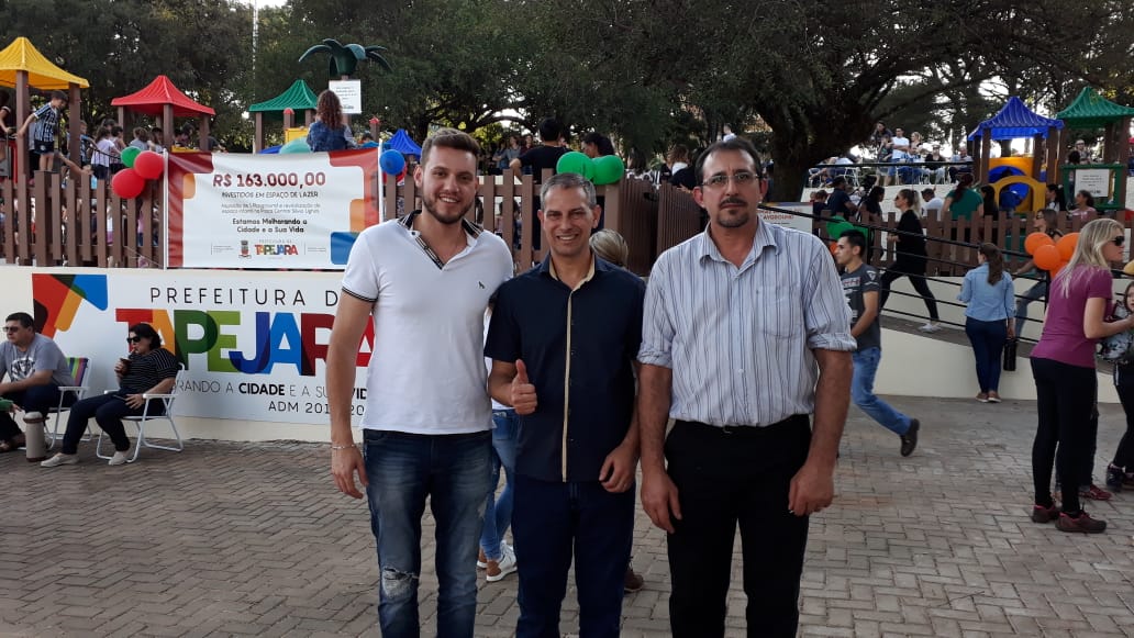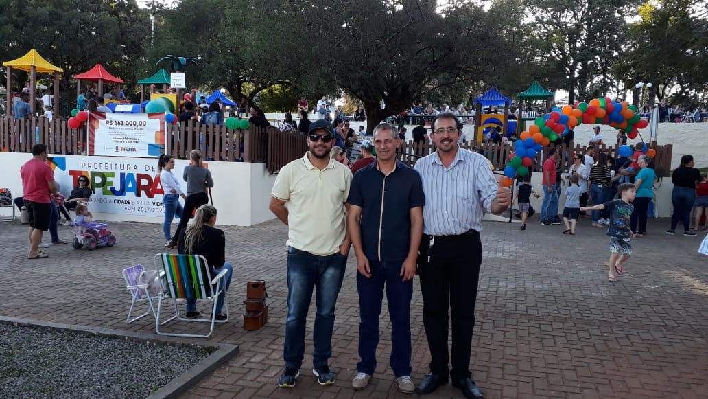 A Câmara de Vereadores, através do presidente Altamir Galvão Waltrich e dos vereadores Celso Piffer e Volmir Oreste Danelli, participou da inauguração da obra de revitalização do playground na Praça Central Silvio Ughini, neste domingo (16).