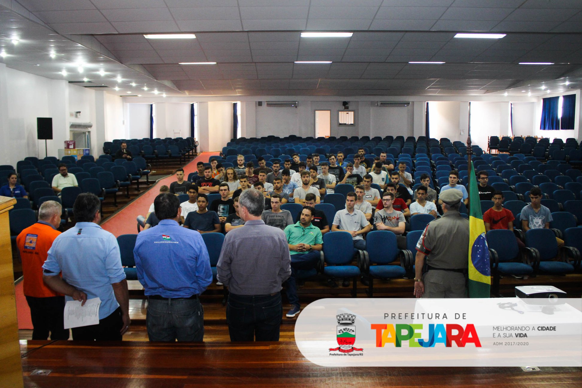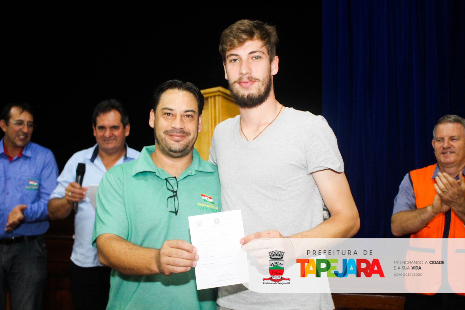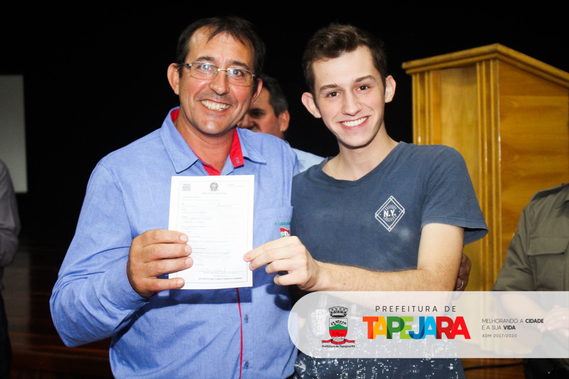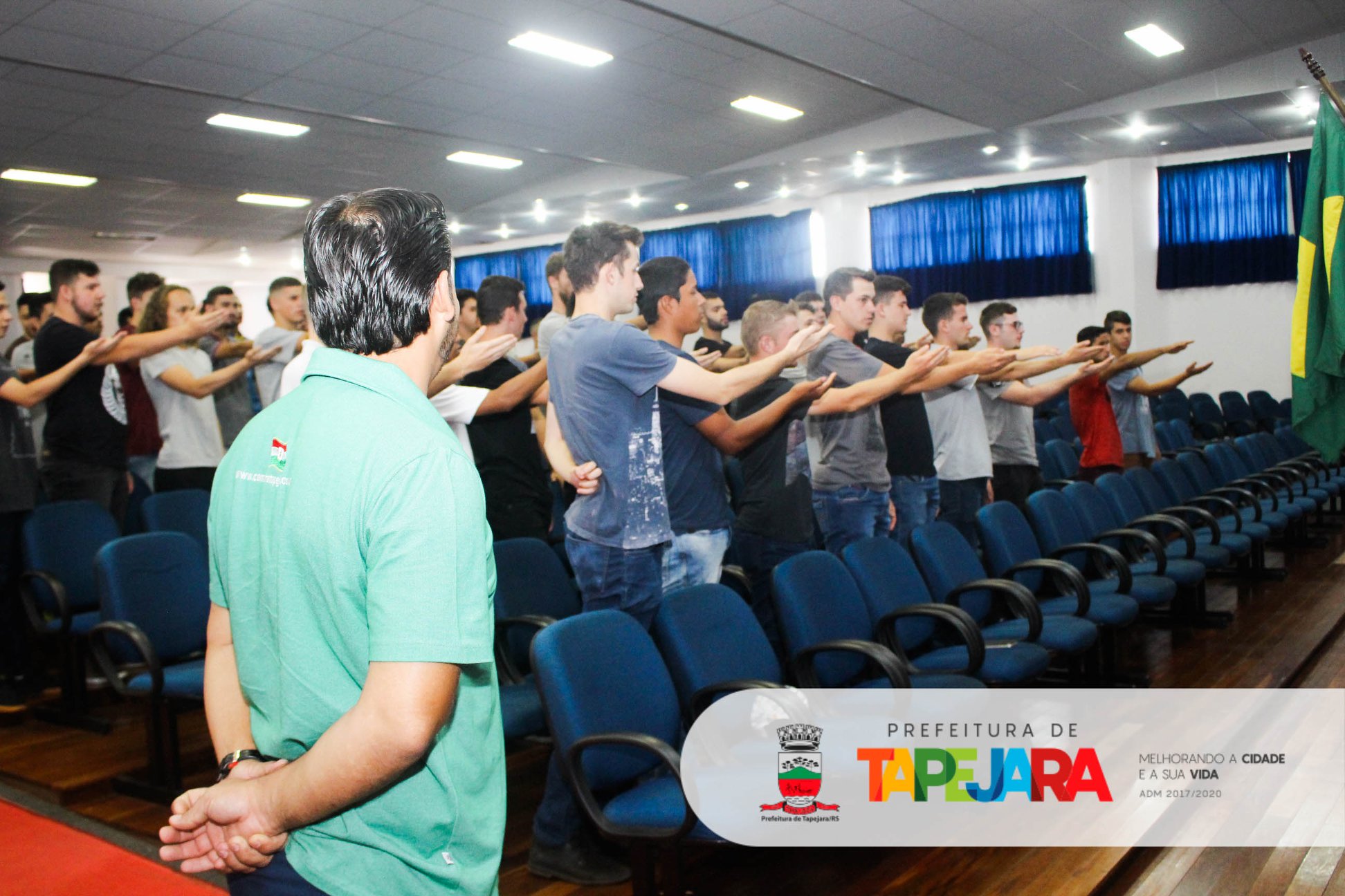 A cerimônia de Juramento à Bandeira foi realizada na manhã de hoje, terça-feira (2) no Centro Cultural de Tapejara. O vice-presidente da Câmara de Vereadores Volmir Oreste Danielli (MDB) e o vereador Diego de Oliveira (MDB) estiveram prestigiando o evento que dispensou da prestação de Serviço Militar 122 jovens.