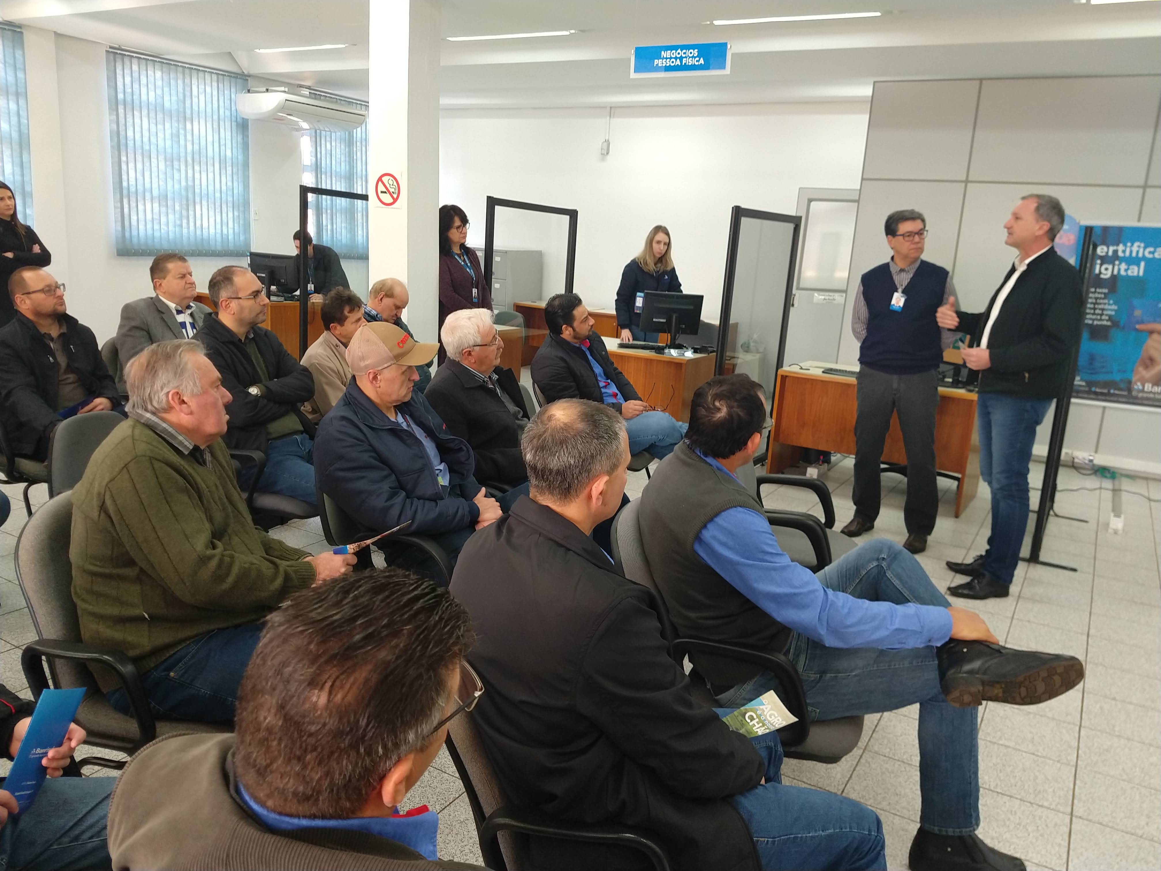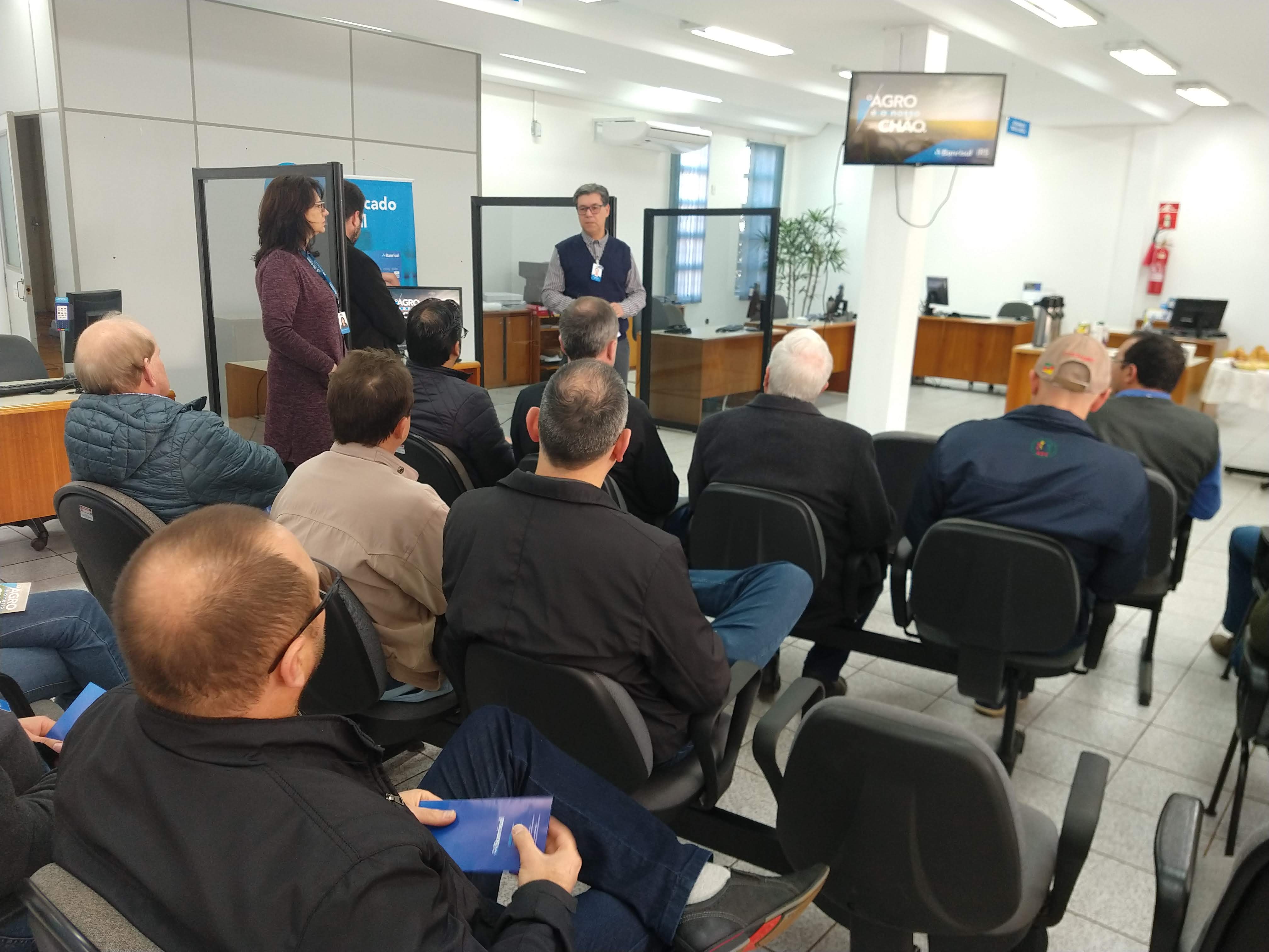 Com o tema “O Agro é nosso Chão”, o evento aconteceu simultaneamente em toda a rede do Banrisul. A apresentação dos dados foi informada pelo gerente Pedro Cabral, que destacou que, pela primeira vez, o banco participa do crédito rural e quer fazer parte do agronegócio, disponibilizando uma dotação de 3,25 bilhões para este segmento. O Plano Safra conta com o apoio do governo do estado do Rio Brande do Sul (RS), a fim de ajudar no desenvolvimento do estado.