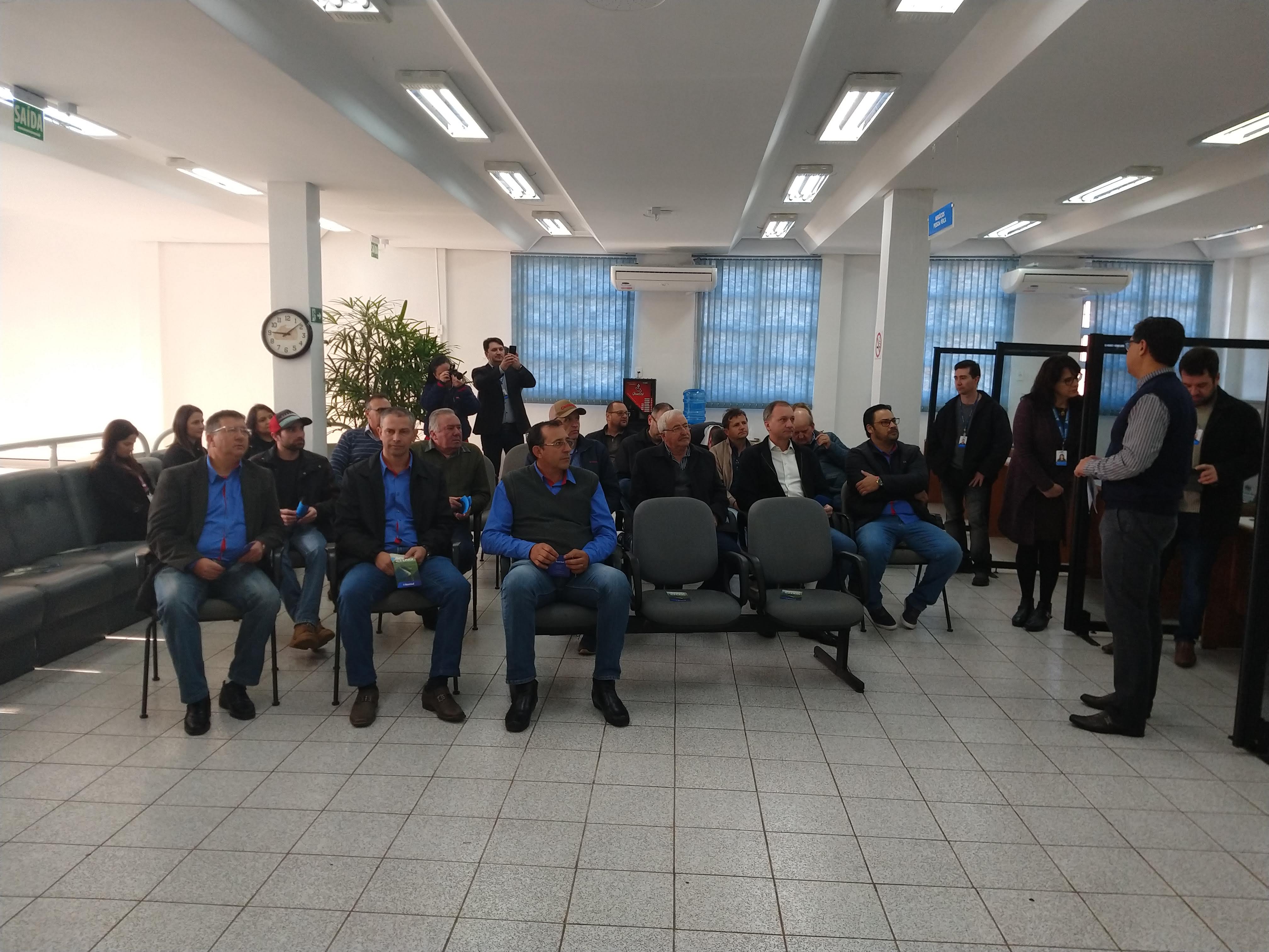 O prefeito Vilmar Merotto e o secretário de Indústria e Comércio e Agricultura e Meio Ambiente, Marcos Bressan, também participaram juntamente com empresários locais, presidentes de entidades, imprensa e colaboradores do Banco Banrisul.