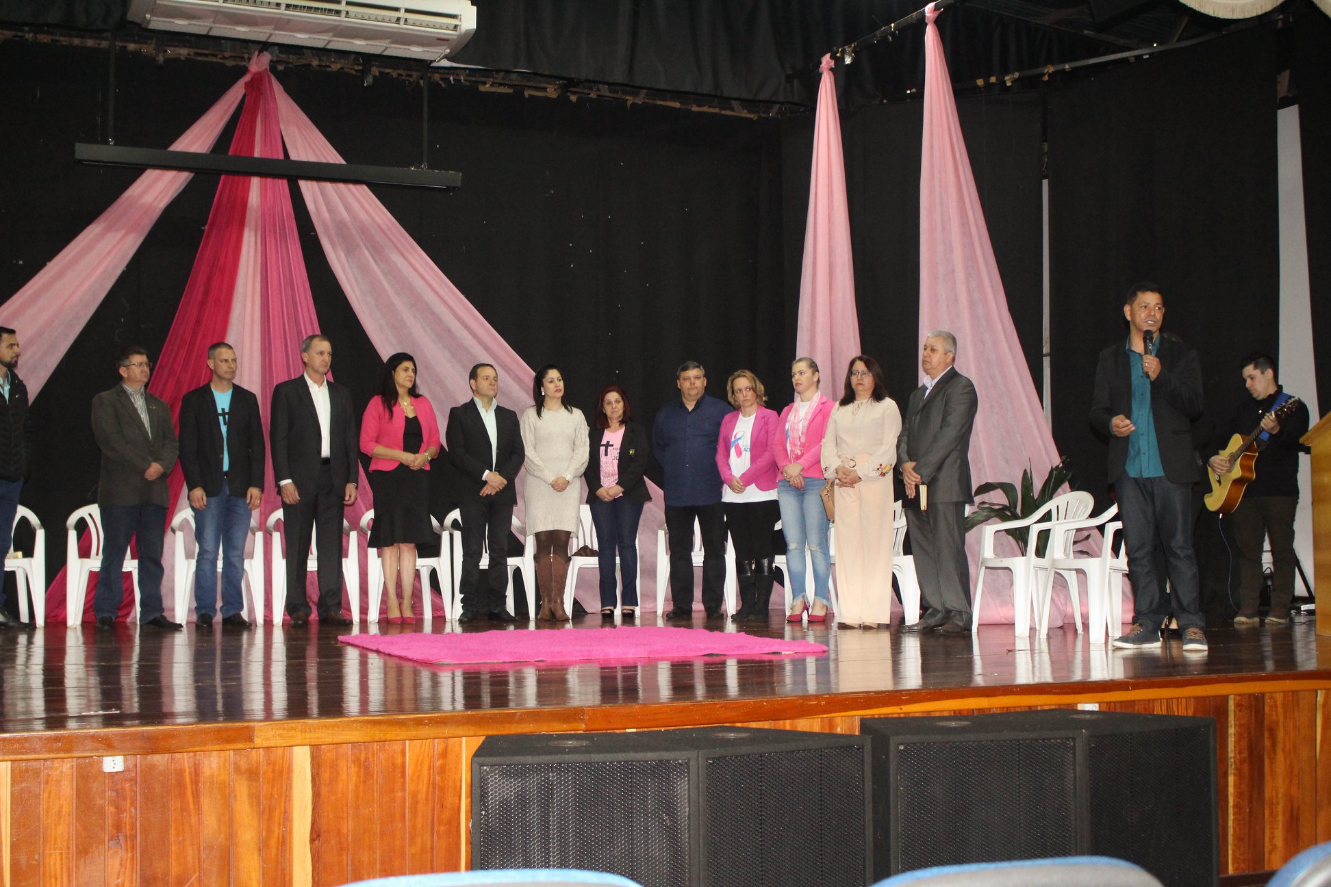 No último sábado (5) o presidente da Câmara de Vereadores, Altamir Galvão Waltrich (MDB) e o vereador Gilberto Scariot (PSB), participaram da abertura oficial da Semana Cultural Cristã, no Centro Cultural.