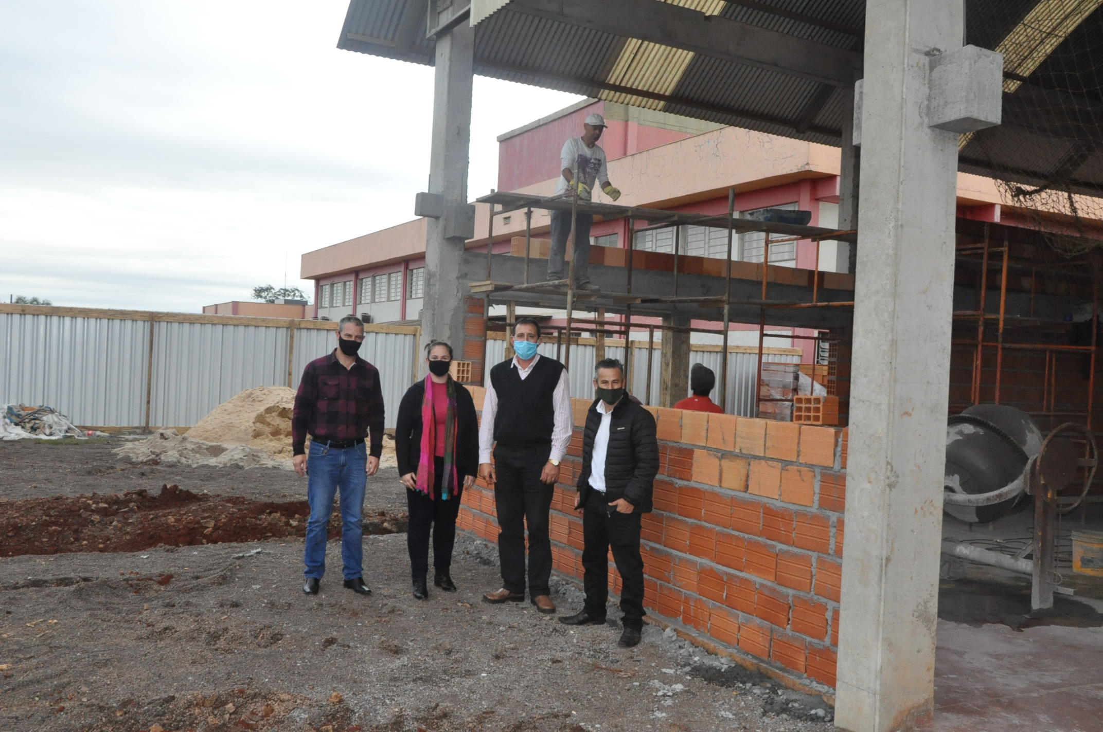 Estiveram, também, na Escola Municipal São Paulo, conferindo as obras de fechamento do Ginásio de Esportes, onde serão construídos banheiros, vestiários e cozinha, a fim de melhorar o local de realização de esportes dos alunos.