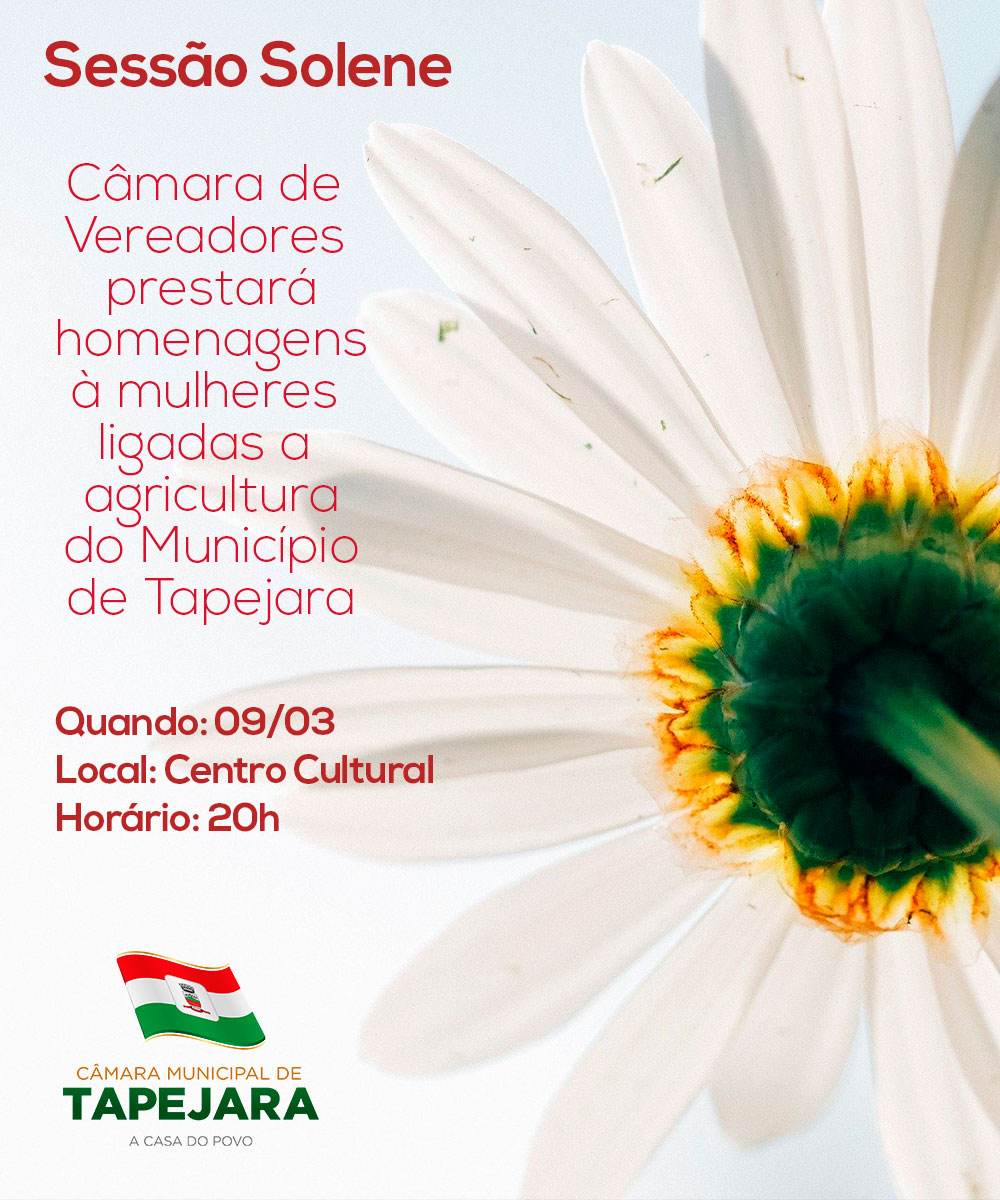 • Câmara de Vereadores prestará homenagens à mulheres ligadas a agricultura do Município de Tapejara
