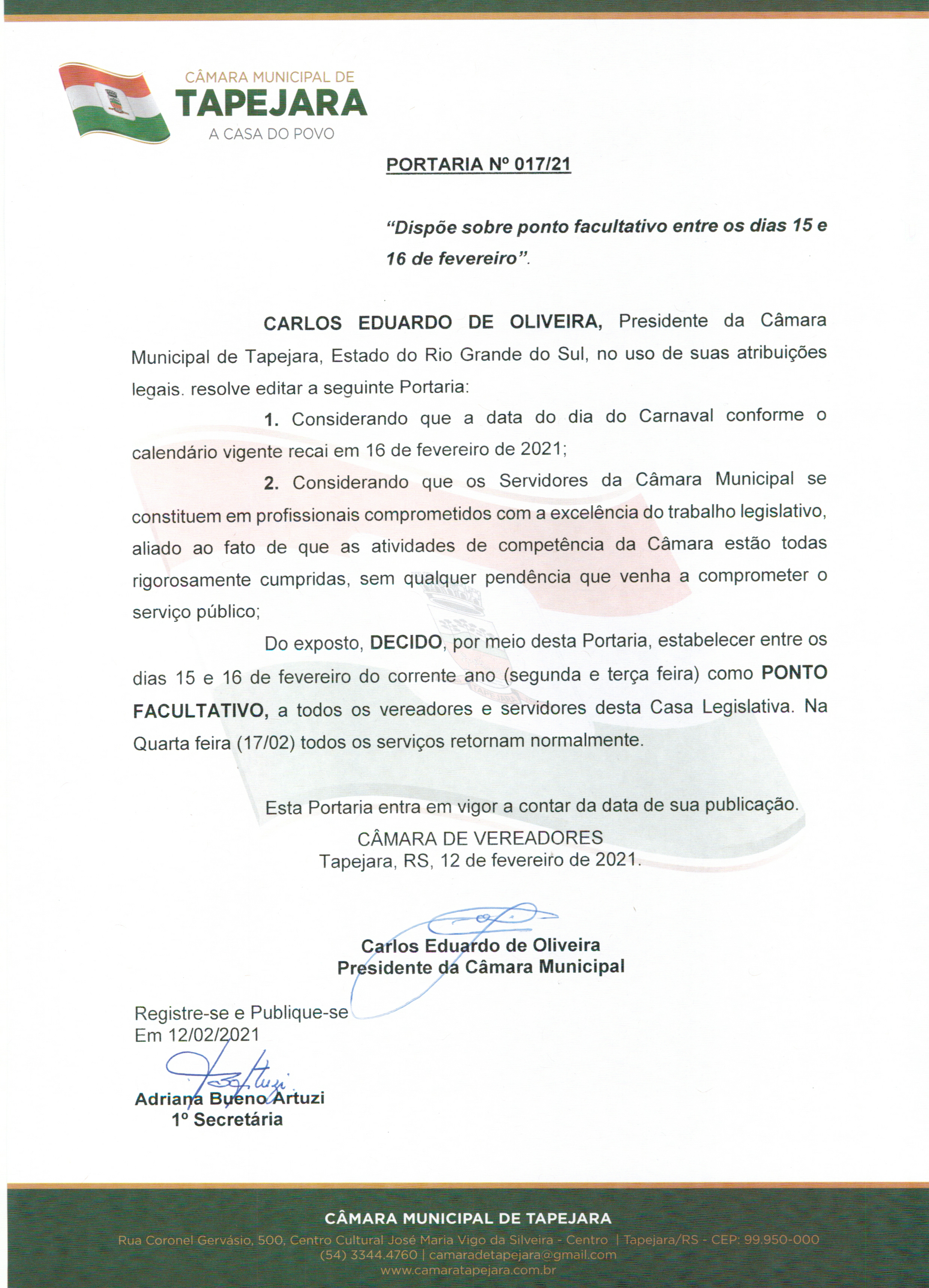 PORTARIA Nº017/21